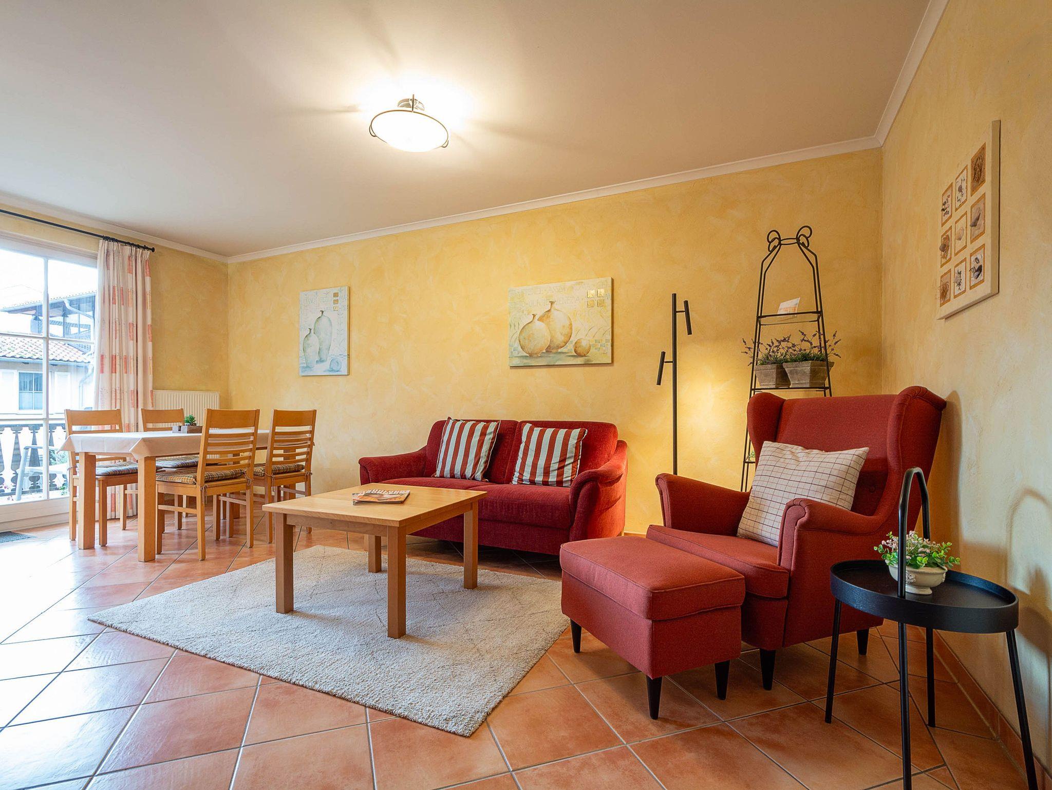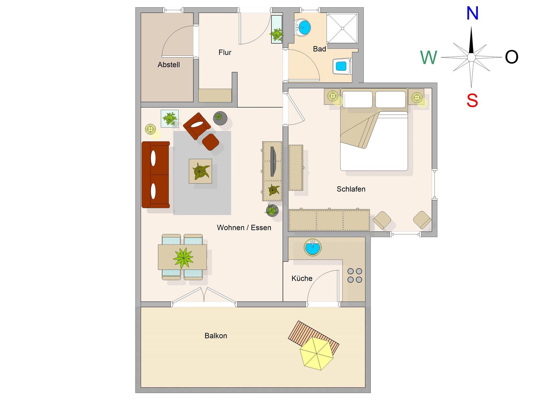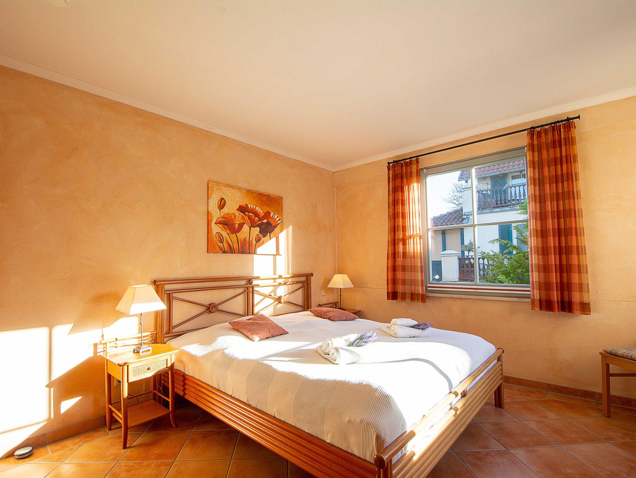 Herzlich willkommen in der wunderschönen hellen und mediterranen Ferienwohnung Nr. 30 in der Residenz Laguna. Die etwa 56 qm große 2-Raum-Ferienwohnung ist für 2 Personen optimal geeignet und befindet sich im Hinterhaus der Appartementanlage im 1. Obergeschoss. Es empfängt Sie ein heller offener mediterran gefliester Wohnraum mit Zugang zum großzügig gestalteten Südbalkon. Der möblierte Balkon mit Blick auf die mediterrane Wasserlandschaft im Innenhof des Hauses lädt zum Relaxen, Sonnenbaden und Verweilen ein. Hier können Sie Ihren Abend nach einem langen Tag an der Ostsee zu einem Gläschen Wein ausklingen lassen. Der Wohnraum bietet Ihnen eine bequeme Couchgarnitur, einen Esstisch, ein Flachbild-TV sowie eine Stereoanlage und grenzt an die offene Küchenzeile. Die Küche ist ausgestattet mit allen wichtigen Küchengeräten und -utensilien, die Sie für Ihr „perfektes Dinner“ benötigen: 4-Platten-Cerankochfeld mit Backofen und Dunstabzug, Geschirrspülmaschine, Kaffeemaschine, Wasserkocher und Toaster sowie ausreichend Geschirr, Besteck, Töpfe etc. sind vorhanden. Der großzügige helle Schlafraum mit Blick auf den wunderschönen Innenhof bietet Ihnen ein Doppelbett, einen großzügigen Kleiderschrank für Ihre Urlaubsgarderobe, eine Kommode zur Ablage wichtiger Urlaubsutensilien, einen Spiegel sowie 2 Stühle zum Ablegen Ihrer Kleidung oder Ihrer Taschen. Im gefliesten Tageslichtbad mit Dusche und WC können Sie Ihre Handtücher auf dem Handtuchheizkörper kuschlig warm vorwärmen.