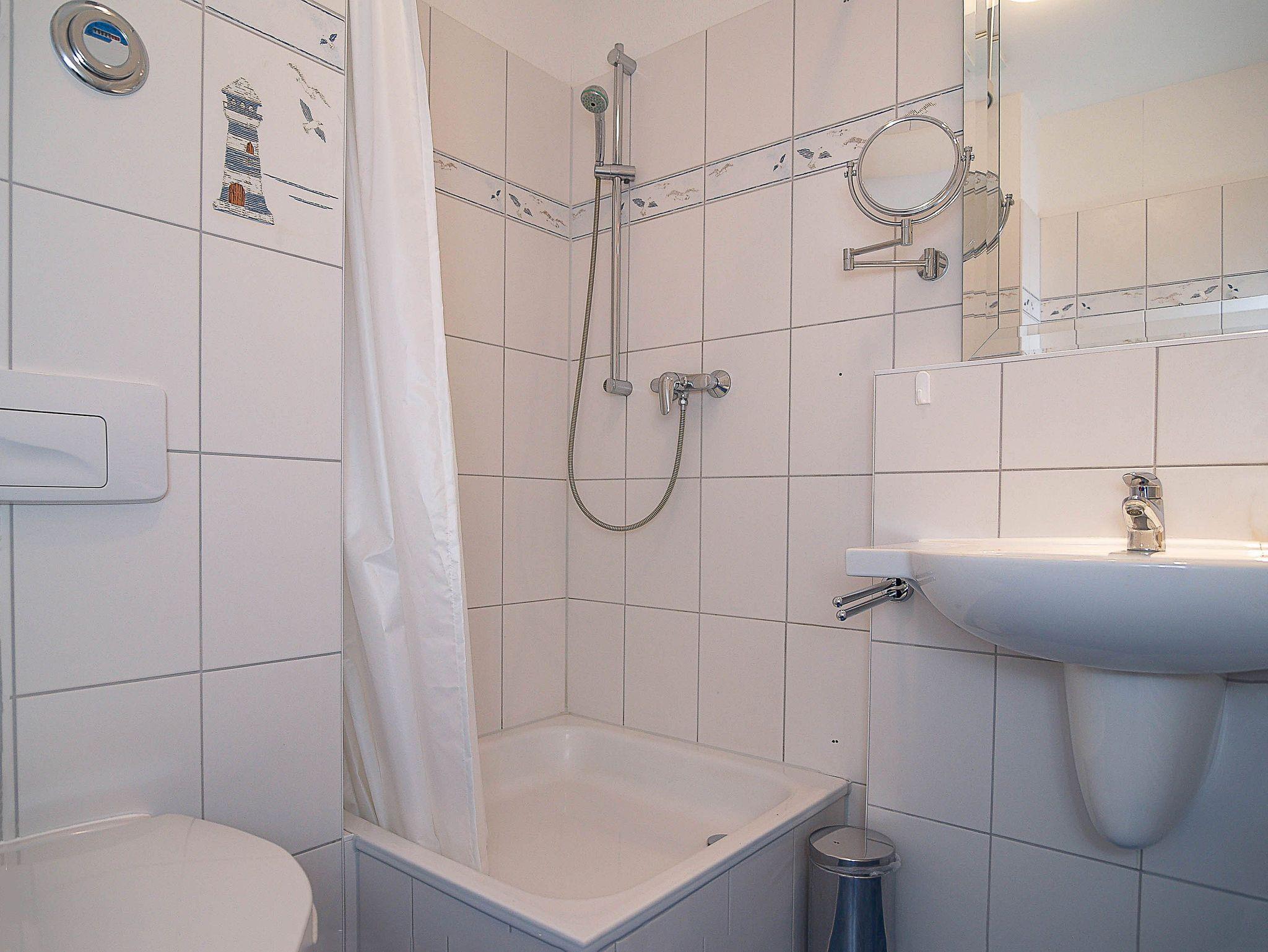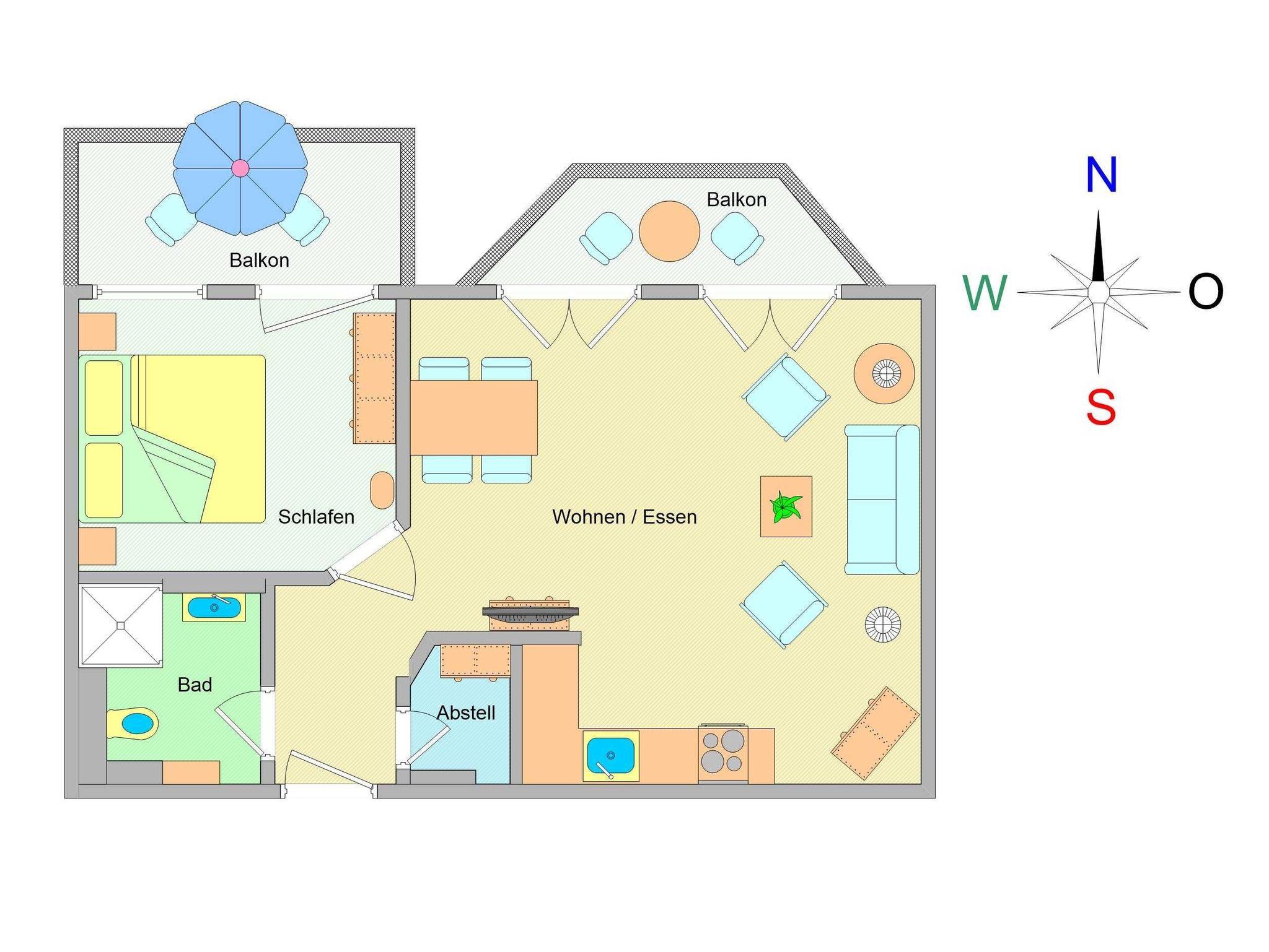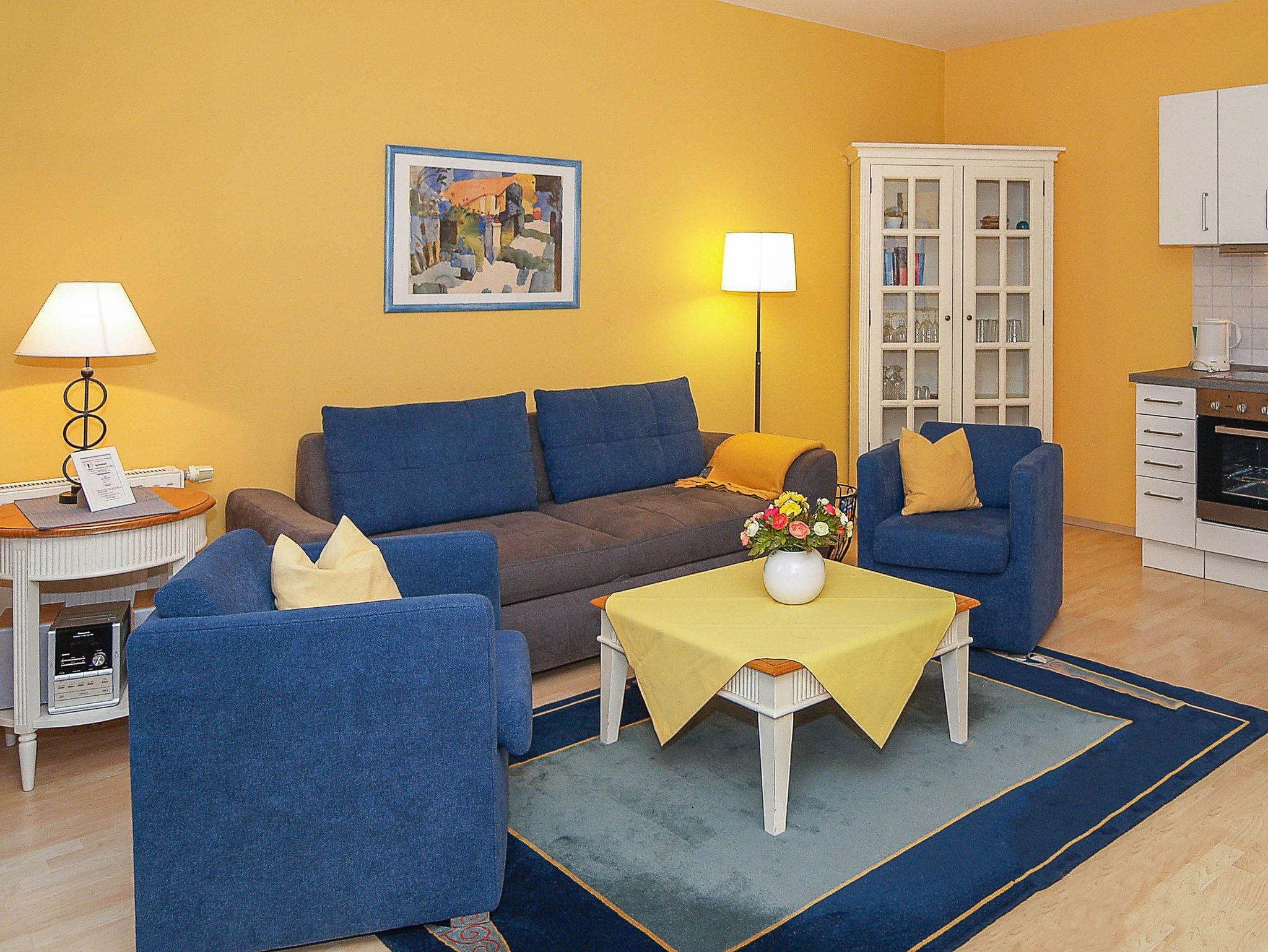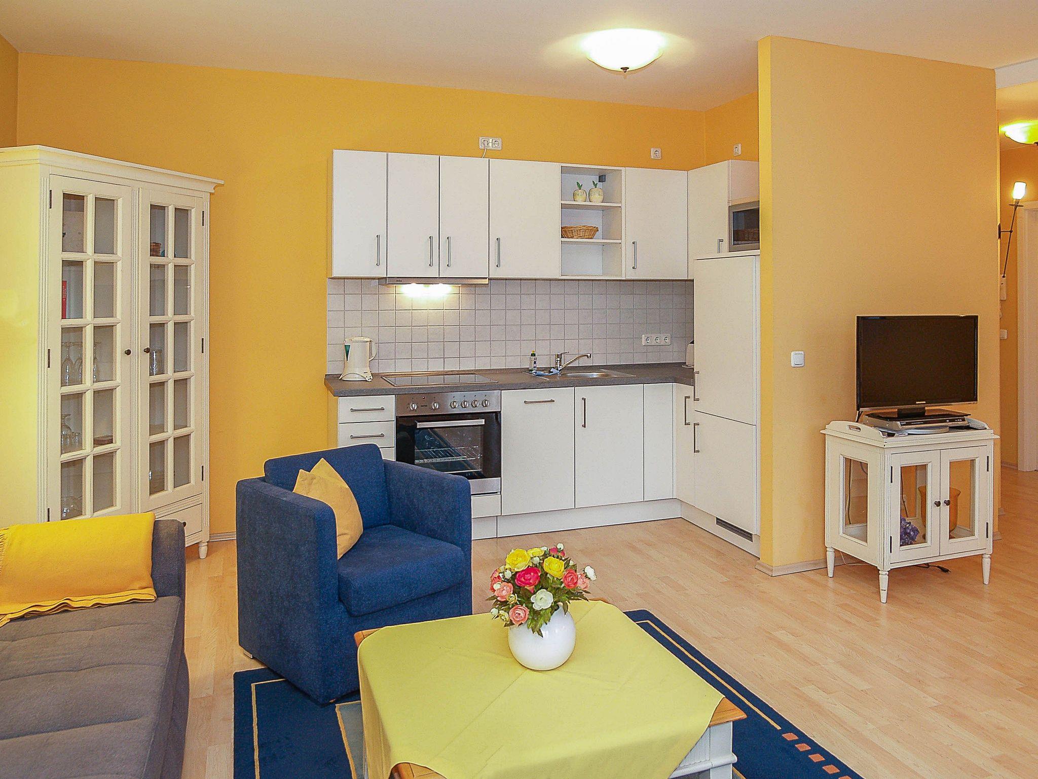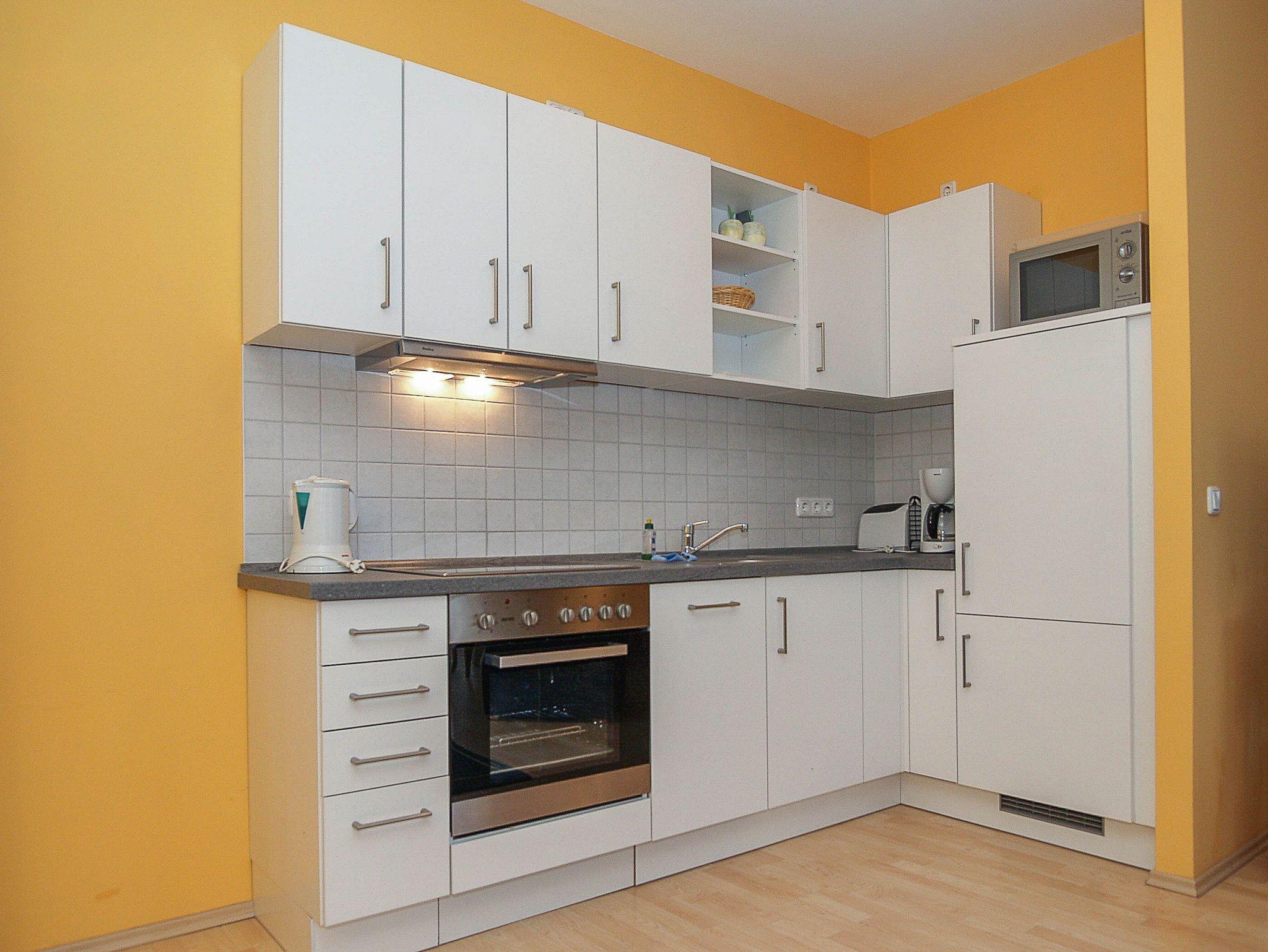 Herzlich Willkommen in der Wohnung Nr. 27 im Appartementhaus Miramare! Sie wohnen in einer ca. 52m² großen 2-Raum-Ferienwohnung, die sich im 2. Obergeschoss des Hauses befindet. Der freundlich gestaltete Wohnraum ist ausgestattet mit einer gemütlichen Schlafcouch, Flachbild-TV, einem großen Esstisch mit 5 Stühlen sowie einer Küchenzeile. Hier finden Sie alle wichtigen Küchengeräte und -utensilien, die Sie für Ihr „perfektes Dinner“ benötigen (4-Platten-Ceranfeld, Backofen mit Dunstabzug, Kühlschrank, Geschirrspüler, Kaffeemaschine, Toaster, Wasserkocher u.v.m.). Der Schlafraum mit Doppelbett sowie das geflieste Bad mit Dusche und WC vervollständigen das Gesamtbild dieser Wohnung.