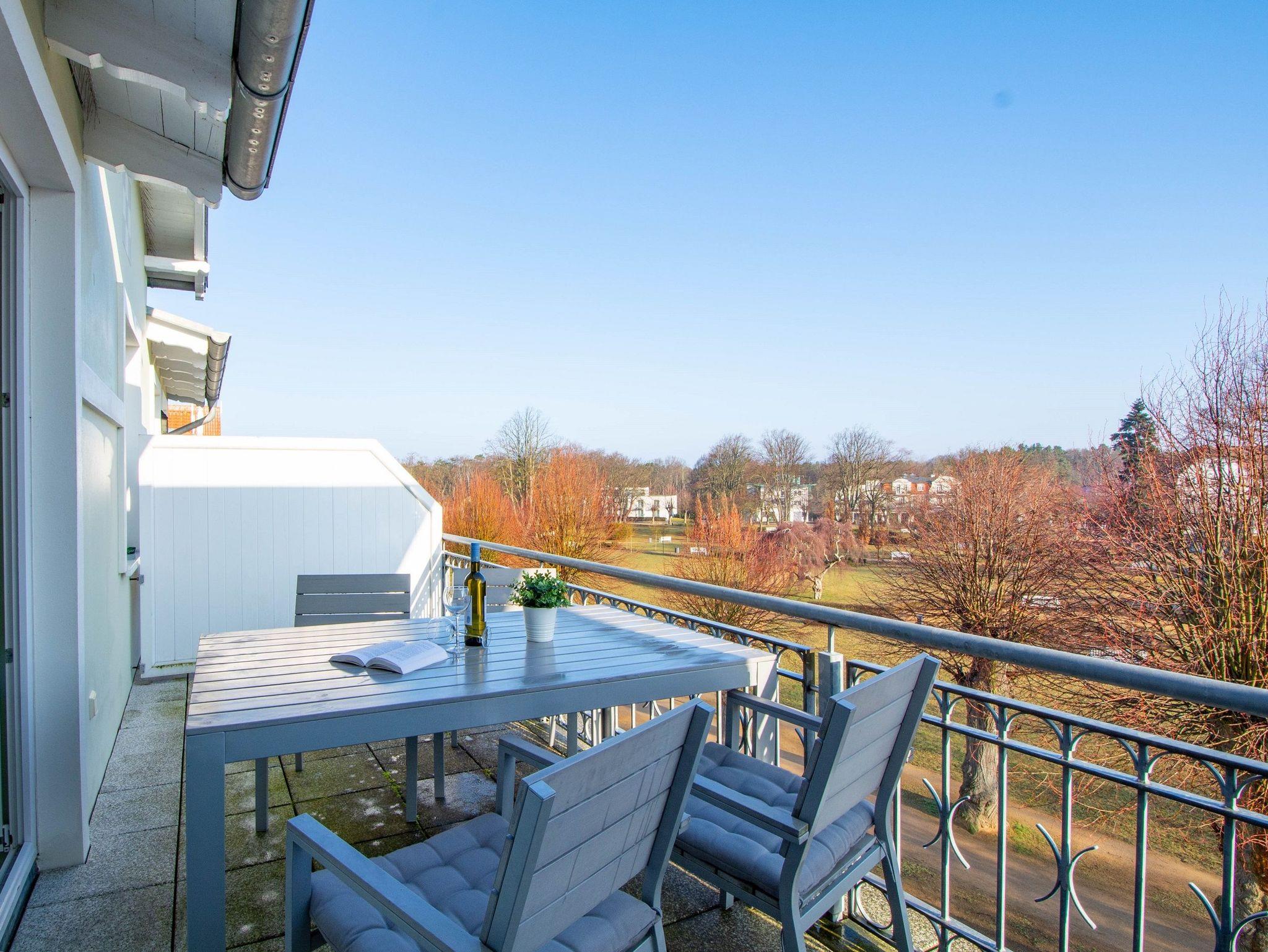 Sie erholen sich in einer wunderschönen 3-Raum-Wohnung von ca. 60 qm Größe, die sich im zweiten Obergeschoss der Villa Seeadler befindet. Der Wohnbereich ist ausgestattet mit Küchenzeile (Herd mit Backofen, Geschirrspüler, Kaffeemaschine, Mikrowelle, Wasserkocher), bequemer Sitzgruppe, Essecke und TV-Gerät. Die Wohnung verfügt über zwei Balkone, die vom Wohnbereich aus betreten werden können. Vom Balkon in Richtung Norden genießen Sie den Blick auf den Lindenpark. Der zweite Balkon zeigt in Richtung Süden und gibt den Blick auf den Stadtwald frei. Ein Schlafzimmer mit Doppelbett (160cm x 200 cm) und ein Schlafzimmer mit 2 Einzelbetten sowie das Bad mit Dusche und WC vervollständigen das Gesamtbild dieser Wohnung.