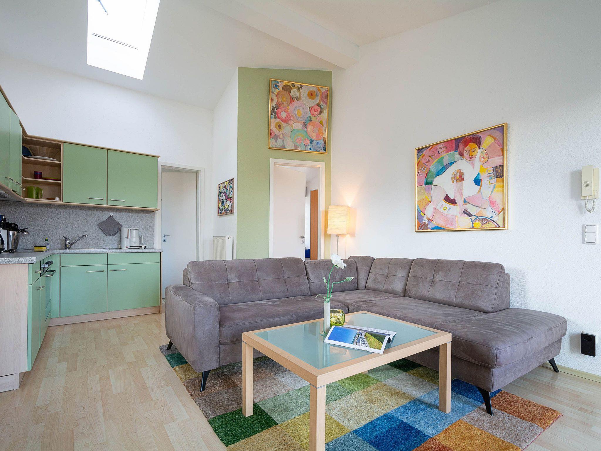 Die hellen freundlichen 2- bis 3-Raum-Ferienwohnungen sind für 2 bis 4 Personen eingerichtet, verfügen über einen Balkon oder eine Terrasse und sind mit einem gefliesten Tageslichtbad ausgestattet.