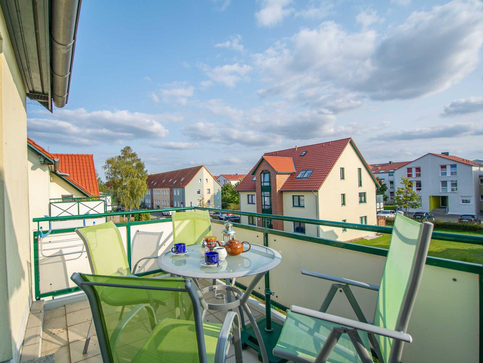 Vom Wohnbereich betreten Sie den möblierten Balkon, der nach Süden ausgerichtet ist. Hier können Sie Sonne tanken, relaxen und den Abend nach einem schönen Tag am Meer ausklingen lassen.