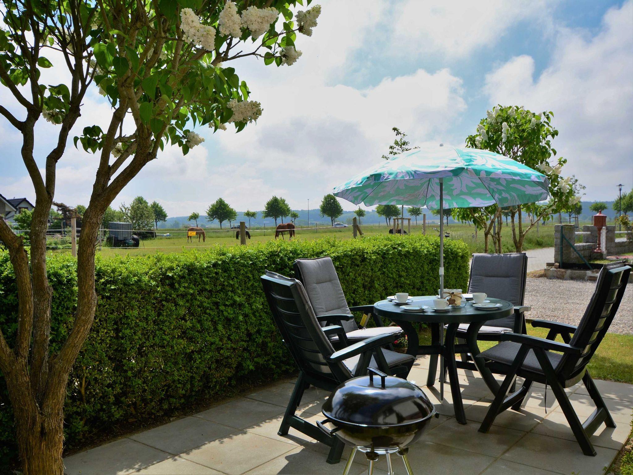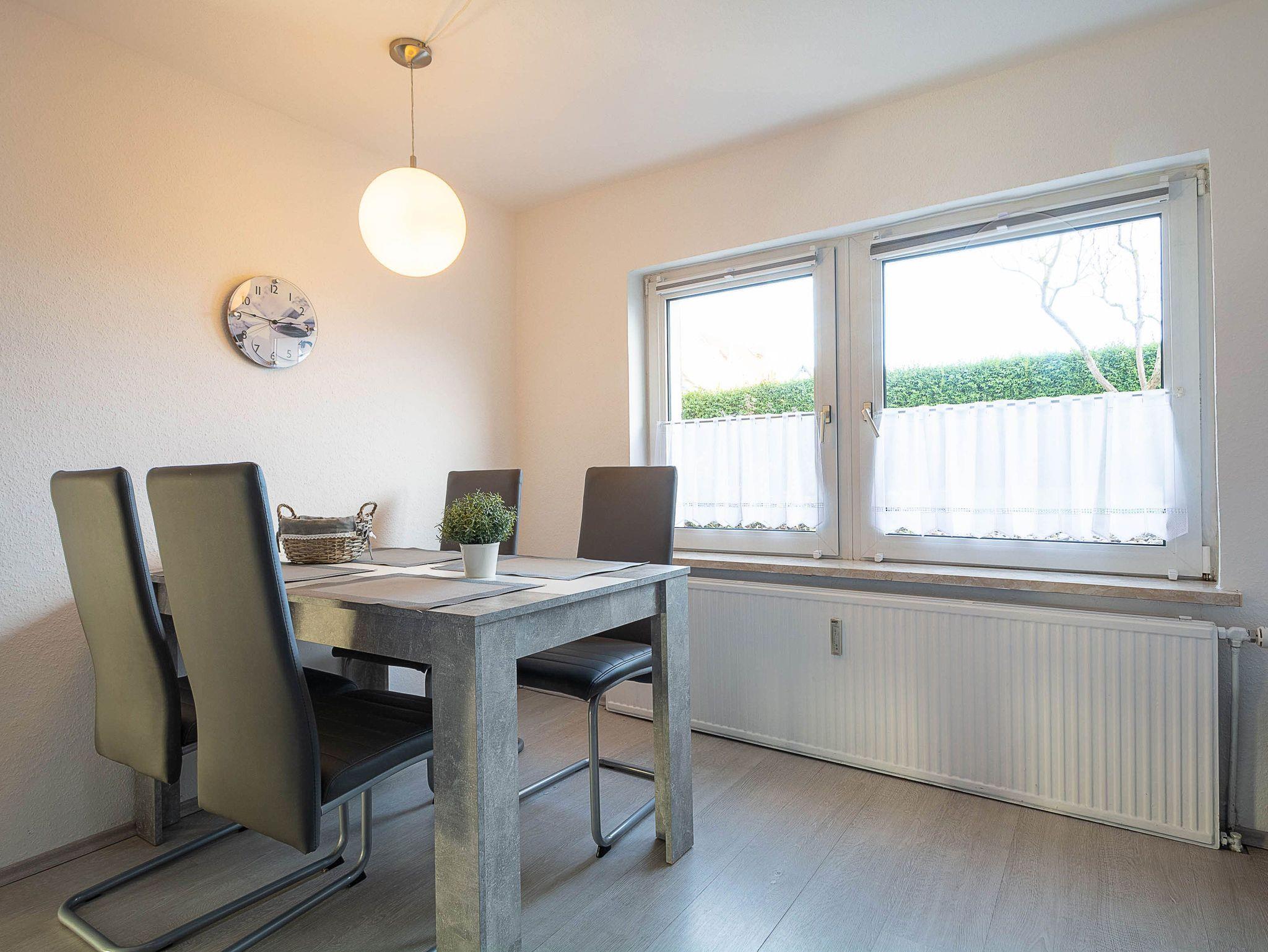 Sie wohnen in einer ca. 65m² großen 2-Raum-Wohnung, die sich im Souterrain eines Einfamilienhauses befindet. Der Wohnbereich ist ausgestattet mit einer großen und gemütlichen Schlafcouch und einem Flatscreen-TV. Im Schlafzimmer befinden sich ein Boxspringbett und ein Kleiderschrank. Die separate Küche ist voll ausgestattet und lässt keine Wünsche offen. Das Bad mit Dusche und WC und die Ost-Terrasse mit Blick auf eine Pferdekoppel vervollständigen das Gesamtbild dieser modernen und ruhigen Wohnung.