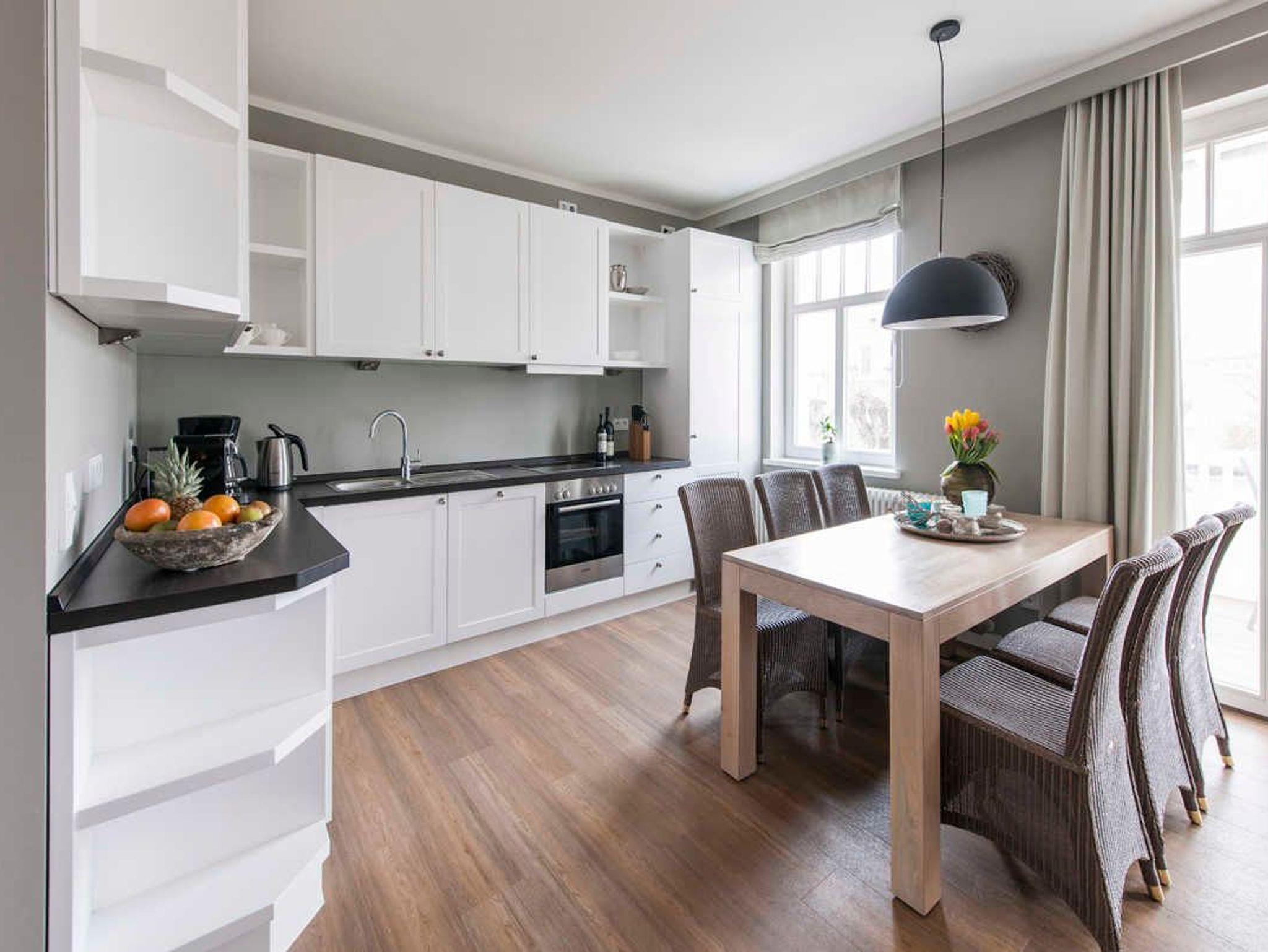 Hier finden Sie das passende Ambiente für Ihren anspruchsvollen Urlaub an der Ostsee in einer Ferienwohnung mit zwei Schlafzimmern, zwei Badezimmern sowie großzügigem Wohn- und Essraum mit allem Komfort und voll ausgestatteter Küche. Die Wohnung verfügt über zwei Balkone, die zum Entspannen, Sonnenbaden oder Essen im Freien einladen.