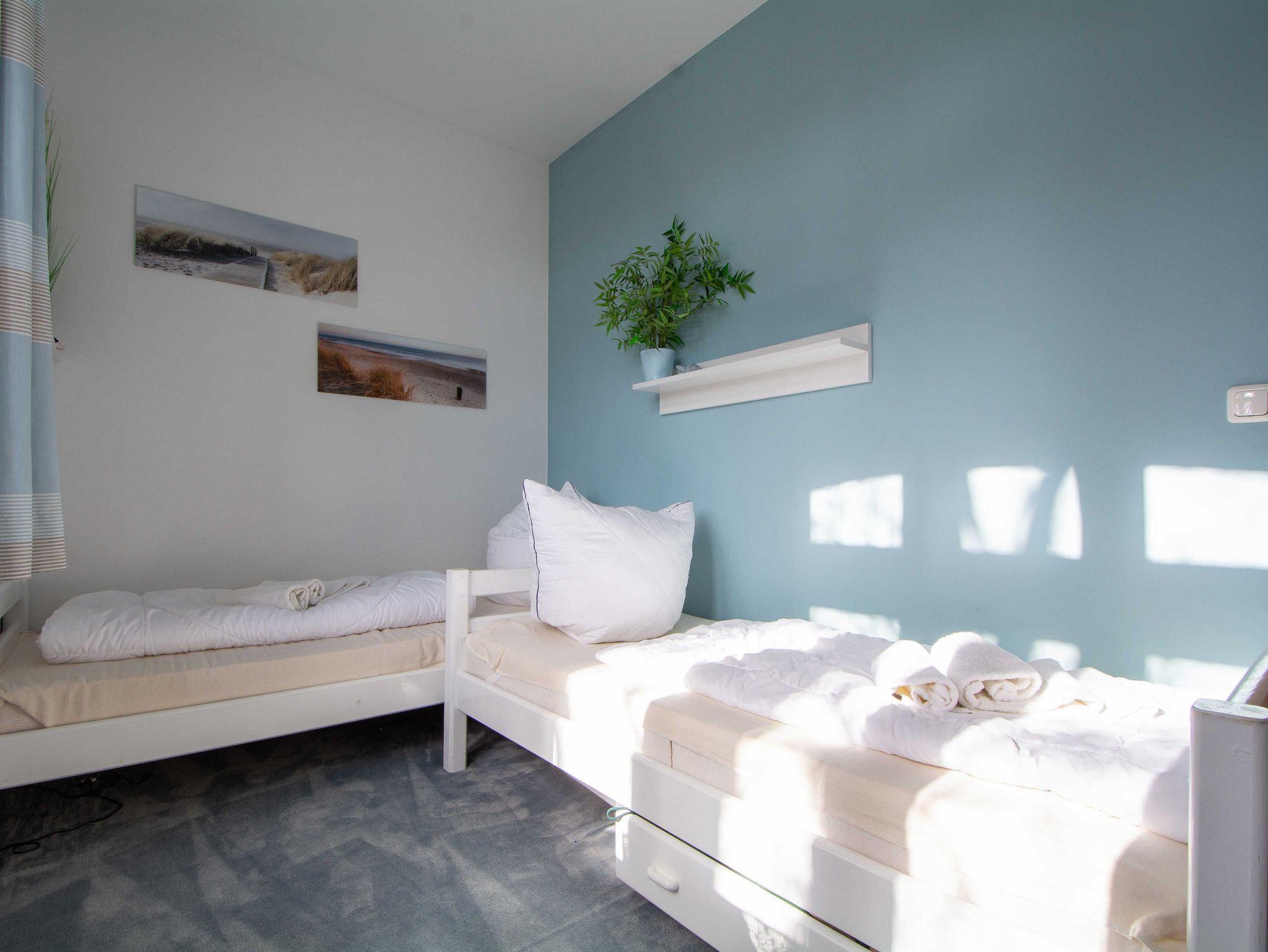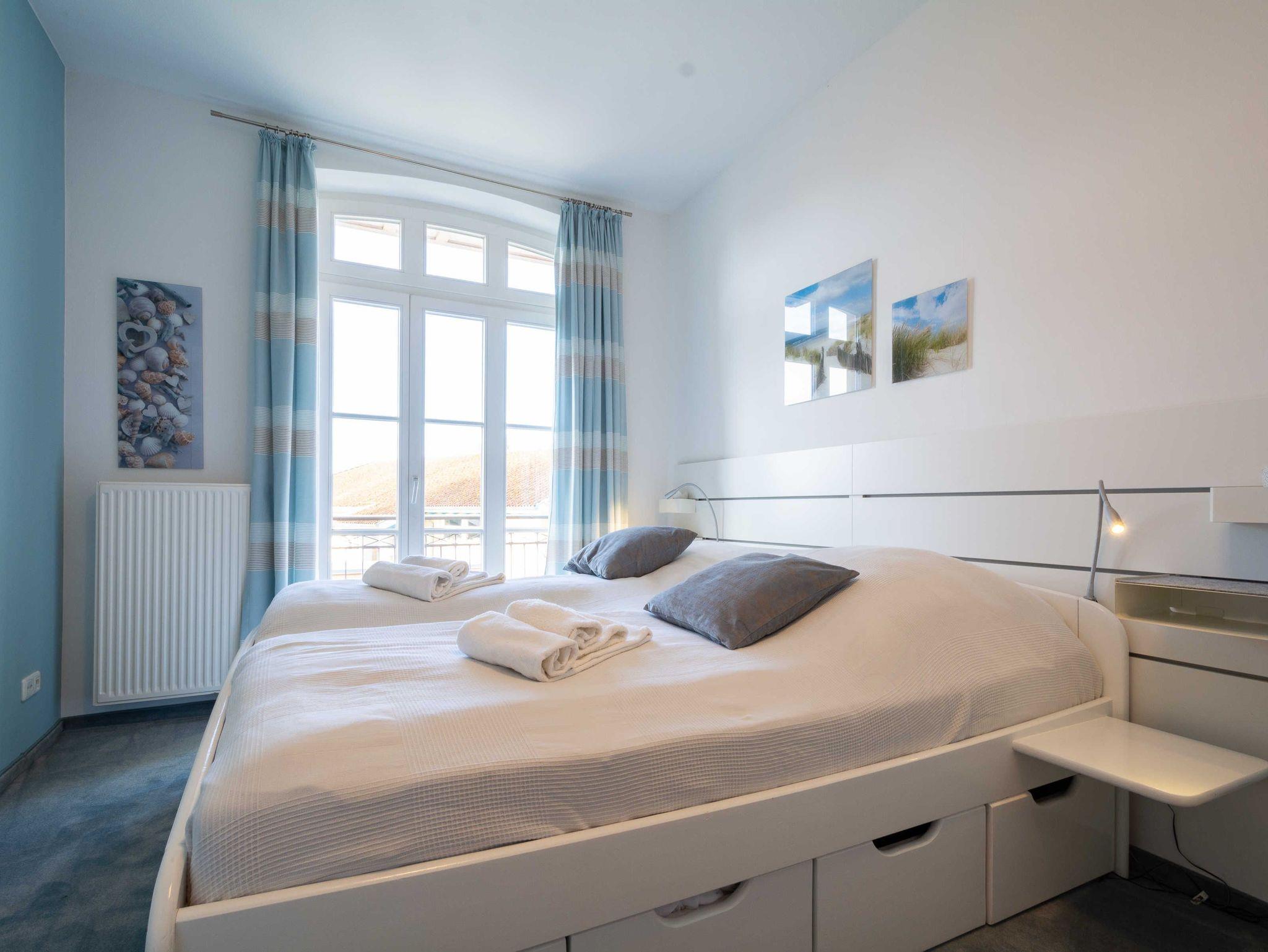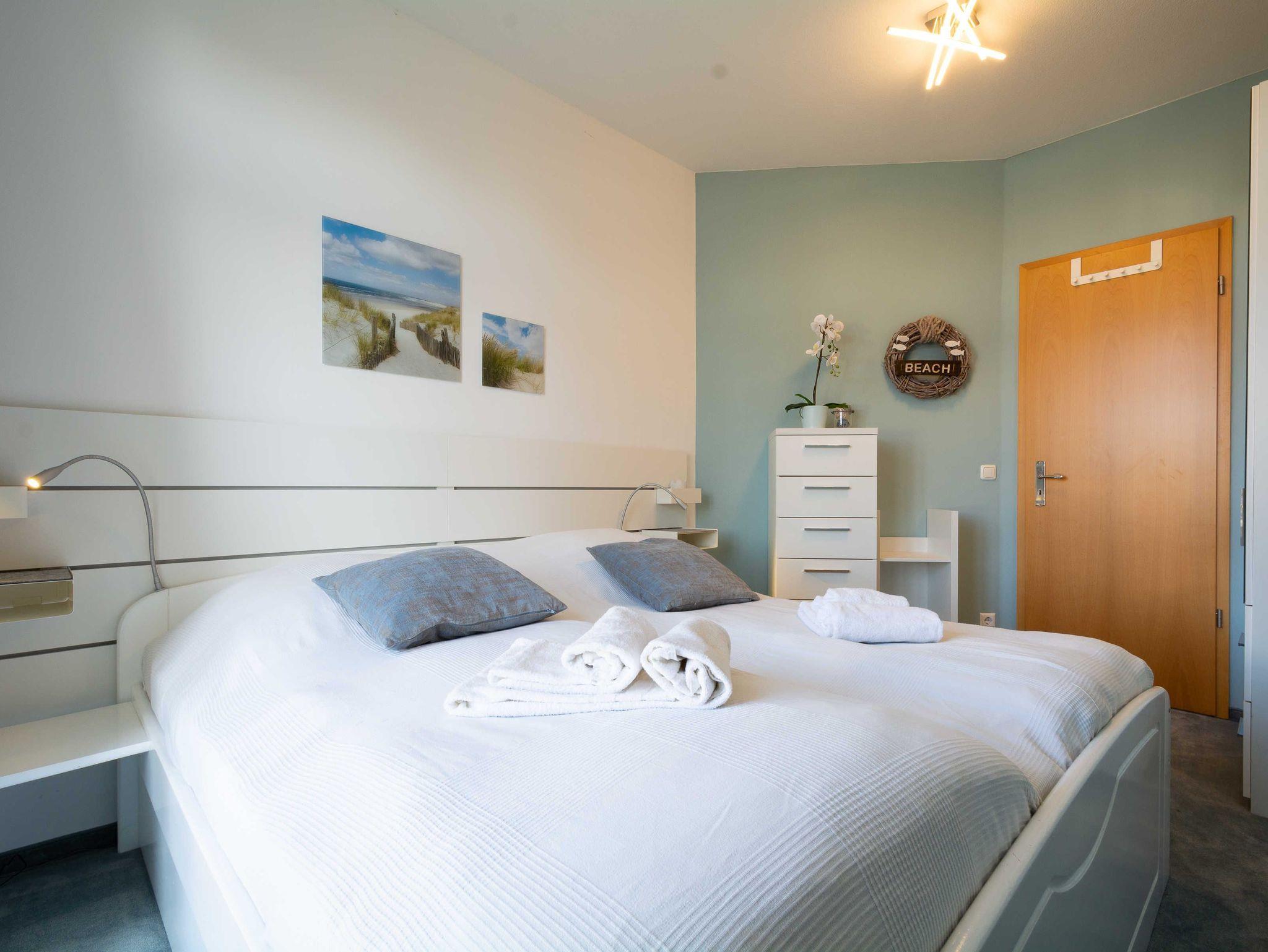 Das erste Schlafzimmer bietet Ihnen ein gemütliches Doppelbett (2 x 90cm x 200cm), einen Kleiderschrank mit Ganzkörperspiegel sowie einen Zugang zum Süd-Balkon, auf dem Sie bei Abendsonne den Tag ausklingen lassen können. Das zweite Schlafzimmer ist ebenfalls mit einem Kleiderschrank mit Ganzkörperspiegel ausgestattet und bietet mit 2 Einzelbetten (je 90cm Matratzenbreite) Platz für 2 weitere Personen. Das geflieste Tageslichtbad mit Dusche und WC vervollständigt das Gesamtbild dieser liebevoll eingerichteten Ferienwohnung.