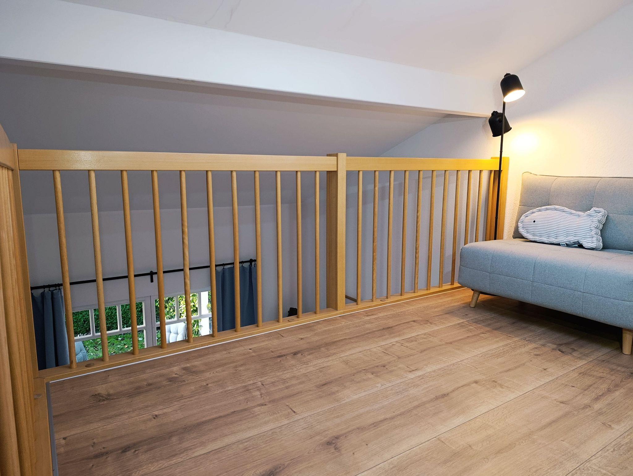 Galerie mit Kleiderschrank, Sessel mit Schlafmöglichkeit