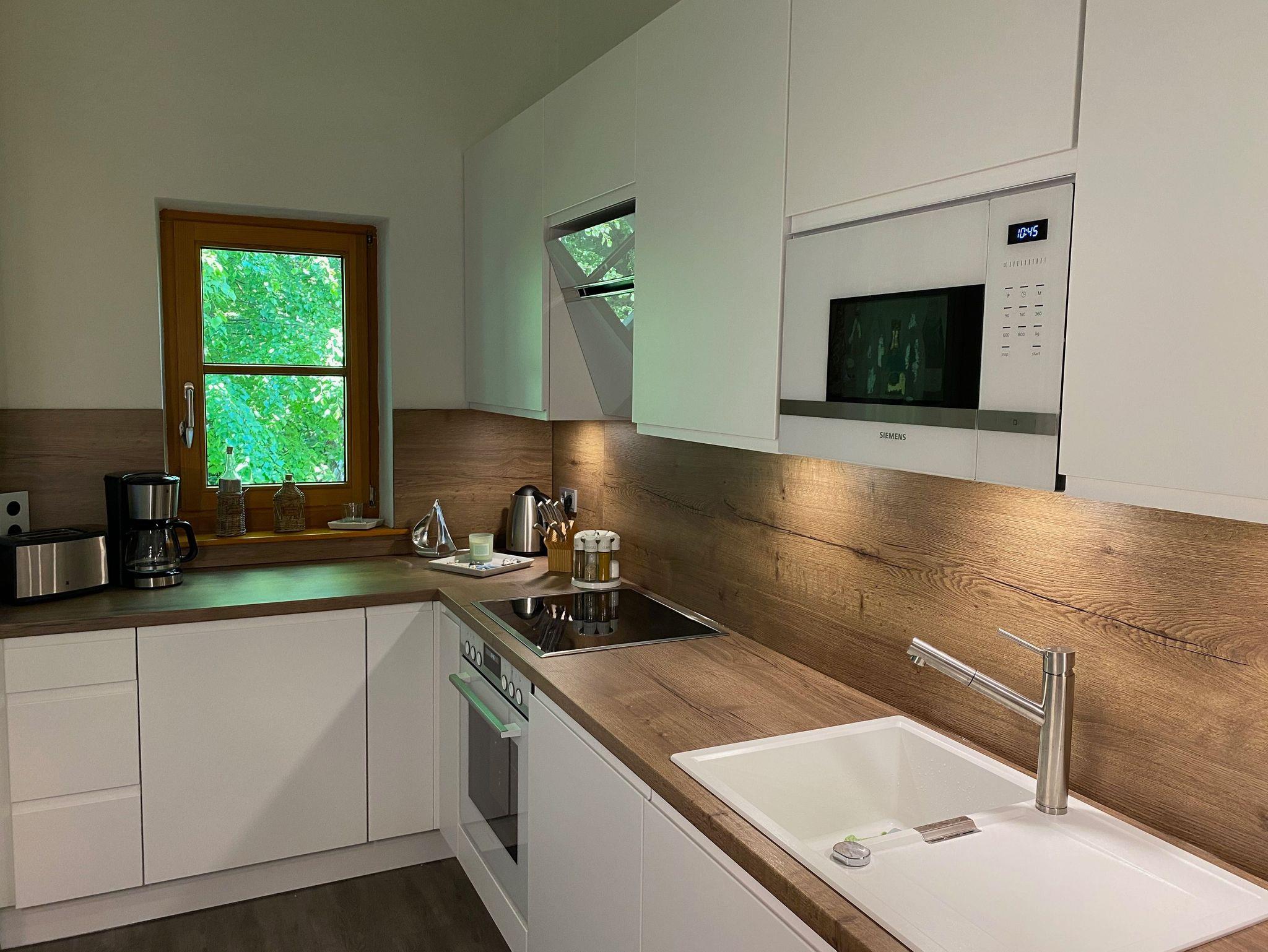 - Küche - Herd mit Backröhre, Mikrowelle, Kühlschrank mit