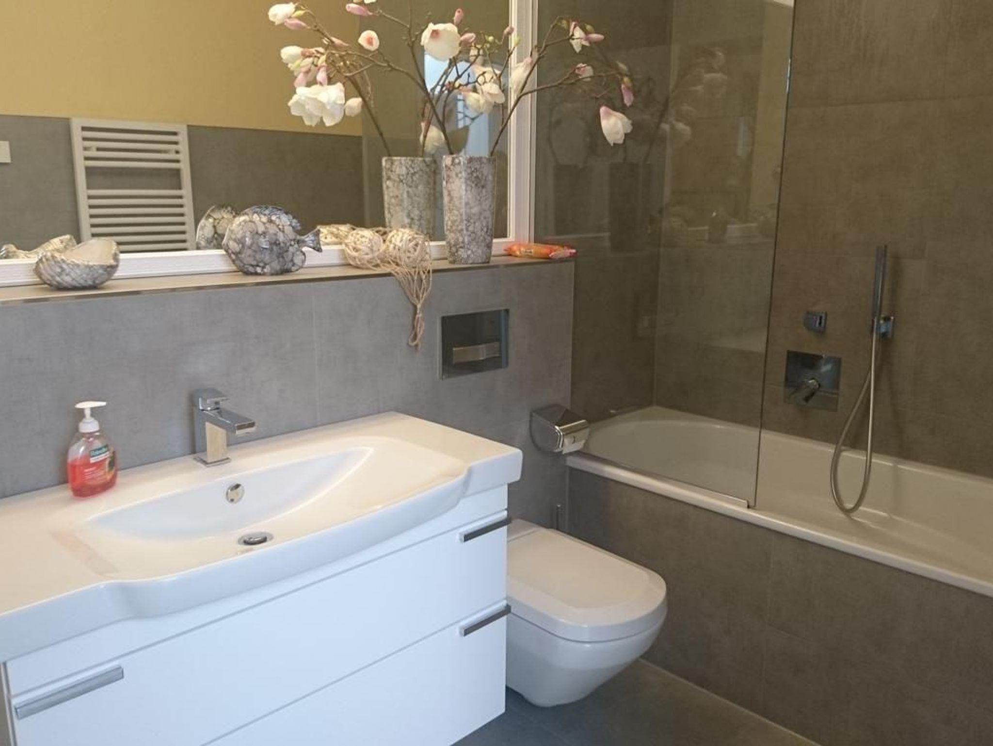 - Badewanne mit Duschabtrennung/WC und Waschmaschine