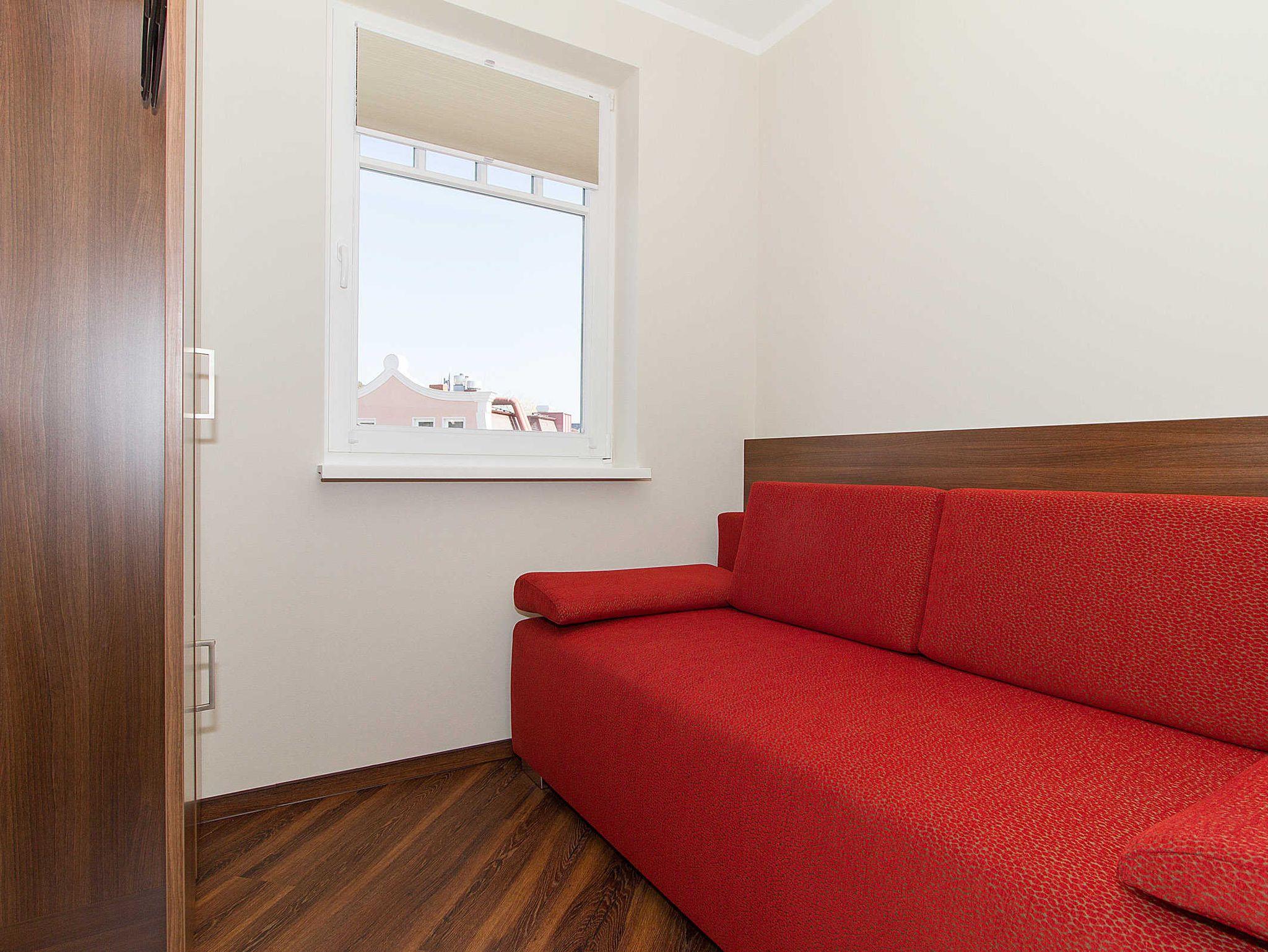 Umfangreich renovierte 3-Raum Ferienwohnung mit Platz für bis zu 4 Personen. Die Wohnung liegt in der 3ten Etage und ist mit dem Balkon zur Ostseite ausgerichtet. Im Schlafzimmer befindet sich ein komfortables Boxspringbett. Im kleinen Kinderzimmer ein ausziehbarer Querschläfer.Das helle Wohnzimmer ist mit ansprechenden Polstermöbeln ausgestattet. Die offene Küche verfügt neben dem Cerankochfeld über einen Geschirrspüler, Mikrowelle, Kühlschrank mit Tiefkühlfach.