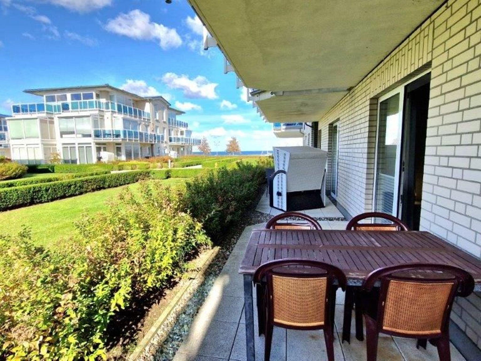 - möblierter Balkon (Ostlage) mit Meerblick und Terrasse (Westlage)