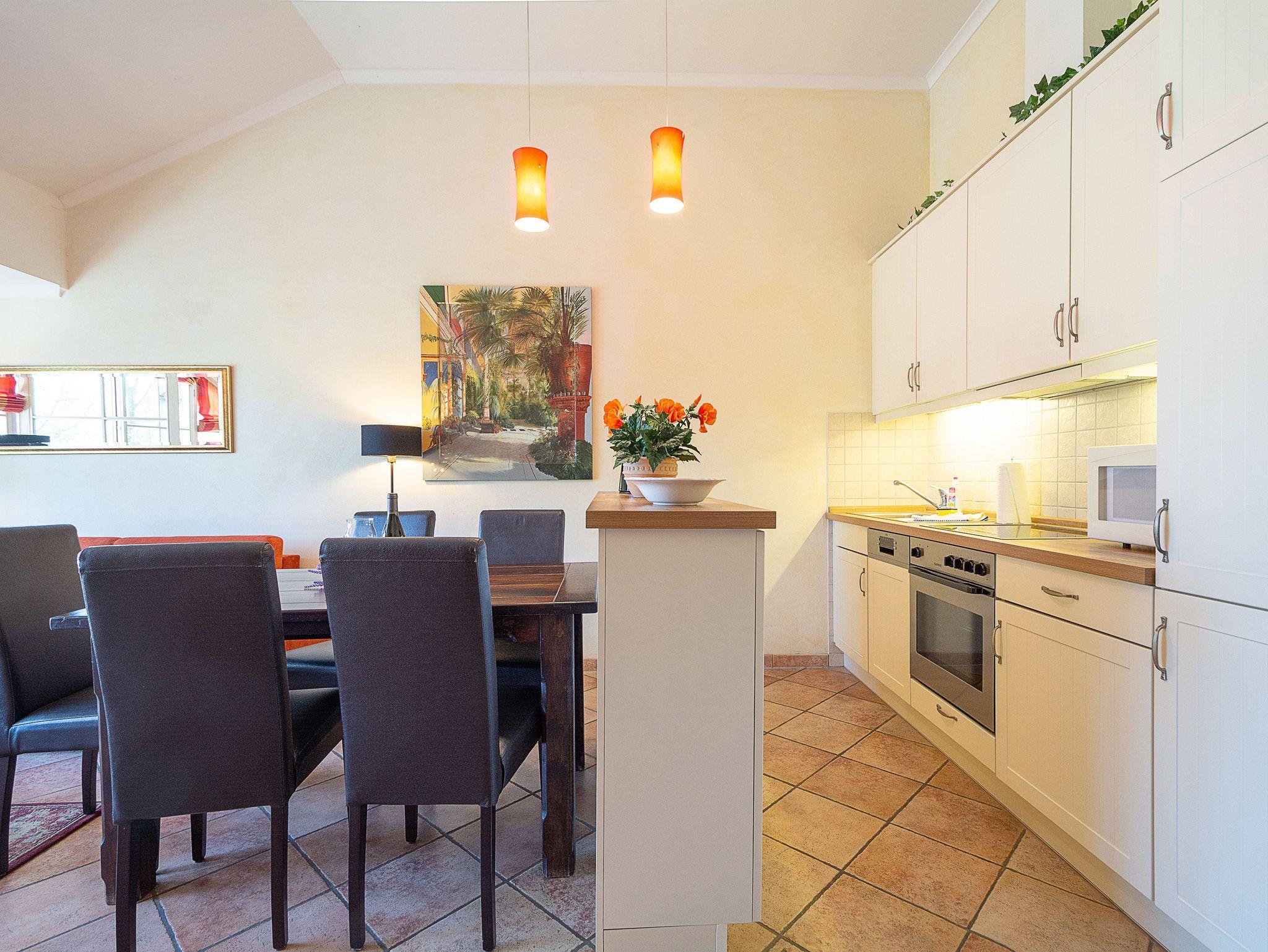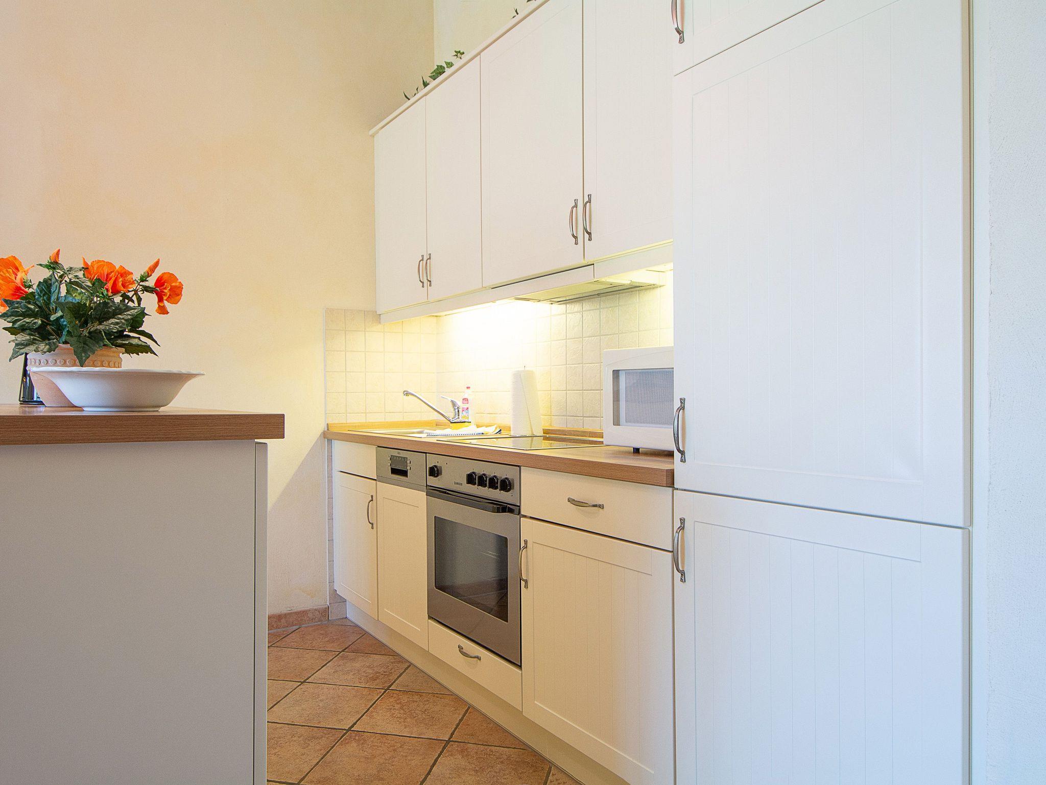 Die geschmackvoll eingerichtete 2-Raum-Ferienwohnung befindet sich im hinteren Bereich der Appartementanlage Residenz Laguna im 2. Obergeschoss und ist über einen Aufzug bzw. den Treppenflur erreichbar. Hier können optimalerweise 2 Personen auf großzügigen 44 m² ihre schönste Zeit im Jahr verbringen. Es begrüßt Sie ein freundlicher Wohnraum mit Schlafcouch (für weitere 2 Personen möglich), Essplatz, Flachbild-TV und Stereoanlage. Vom Wohnzimmer betreten Sie den möblierten West-Balkon mit Blick auf den idyllisch gelegenen Kühlungsborner Stadtwald. Die an den Wohnraum anschließende offene Küchenzeile verfügt über alle wichtigen Küchengeräte und -utensilien, die Sie für Ihren Urlaub benötigen (Geschirrspüler, Herd, Mikrowelle, Kaffeemaschine etc.). Ein Schlafraum mit Doppelbett sowie das Bad mit Dusche und WC vervollständigen das Gesamtbild dieser Wohnung.