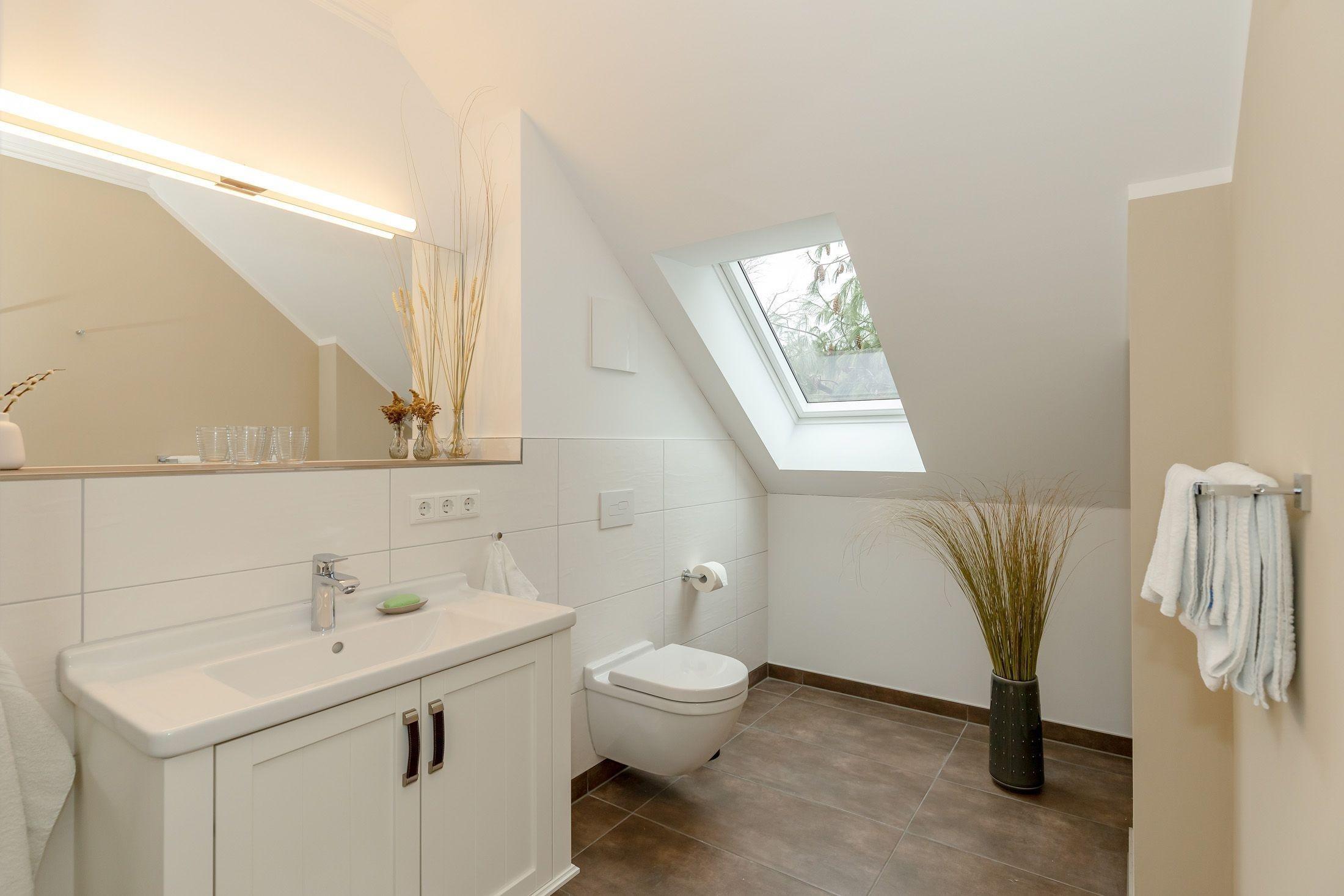 Das Duschbad ist mit einer großzügigen Dusche und WC modern eingerichtet.