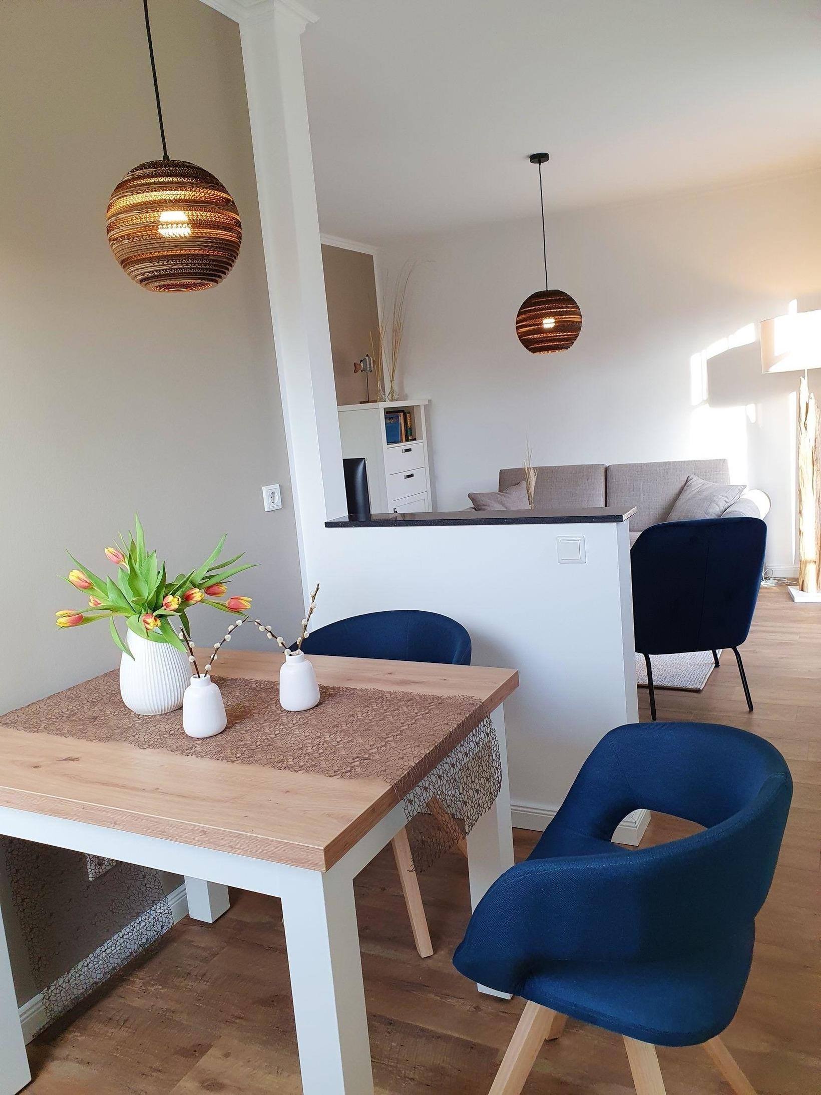 Am großen Esstisch können Sie entspannt Ihre Mahlzeiten genießen.