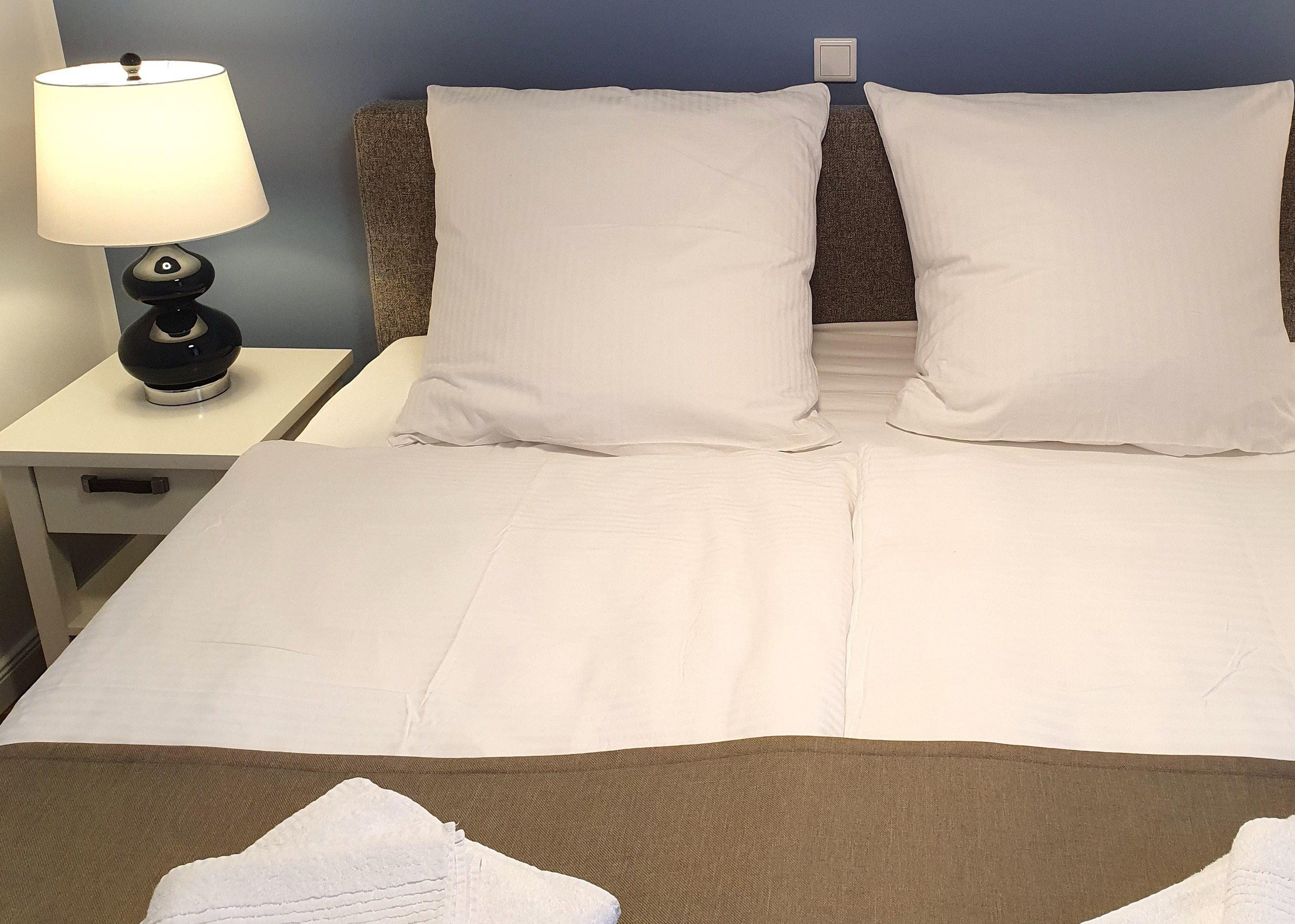 Das erste Schlafzimmer ist mit einem großen, bequemen Boxspringbett für zwei Personen und einem geräumigen Kleiderschrank mit vielen Ablagemöglichkeiten für Ihre Garderobe eingerichtet.
