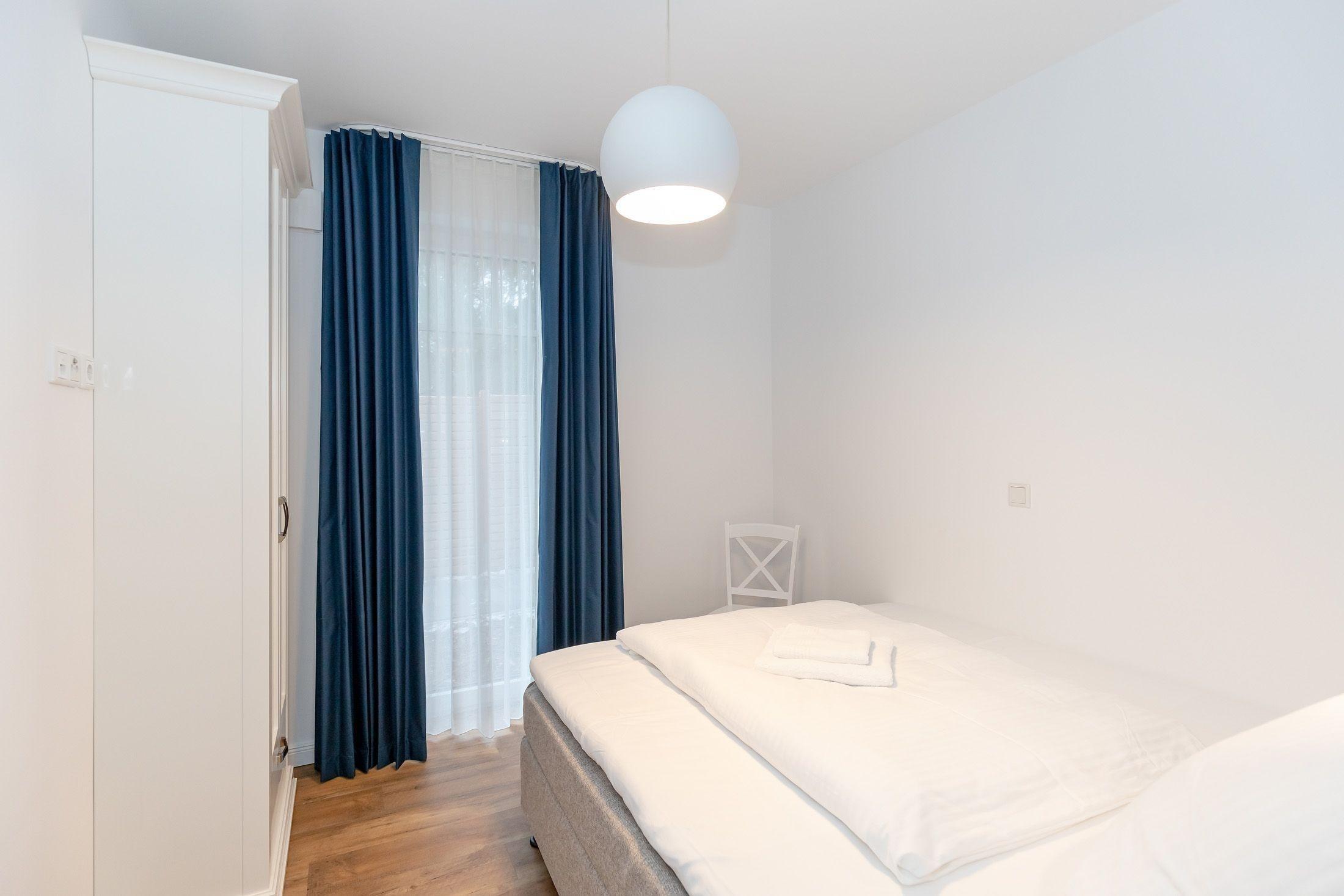 Das zweite Schlafzimmer ist ebenfalls mit einem Boxspringbett (1,60m Breite), für die dritte Person, sowie einem kleinen Kleiderschrank ausgestattet. In dem breiten Bett können auch bequem zwei Kinder oder zwei Jugendliche schlafen.