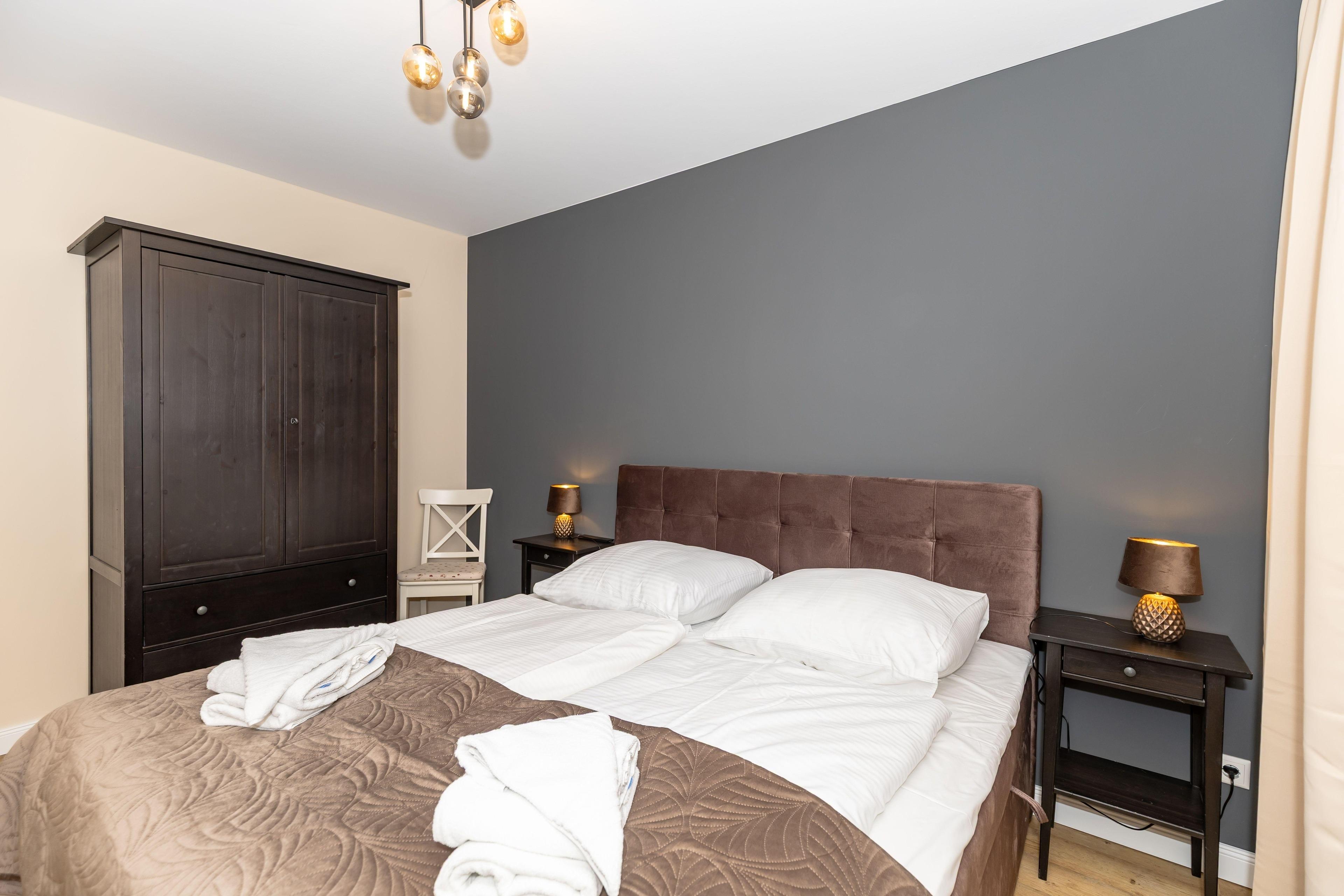 In beiden Schlafzimmer finden Sie je ein Doppelbett in denen sie Ihren Urlaubstraum genießen können. Die vorhandenen Kleiderschränke bieten viel Platz für Ihre Urlaubsgarderobe. Beide Schlafzimmer verfügen über TV Geräte.