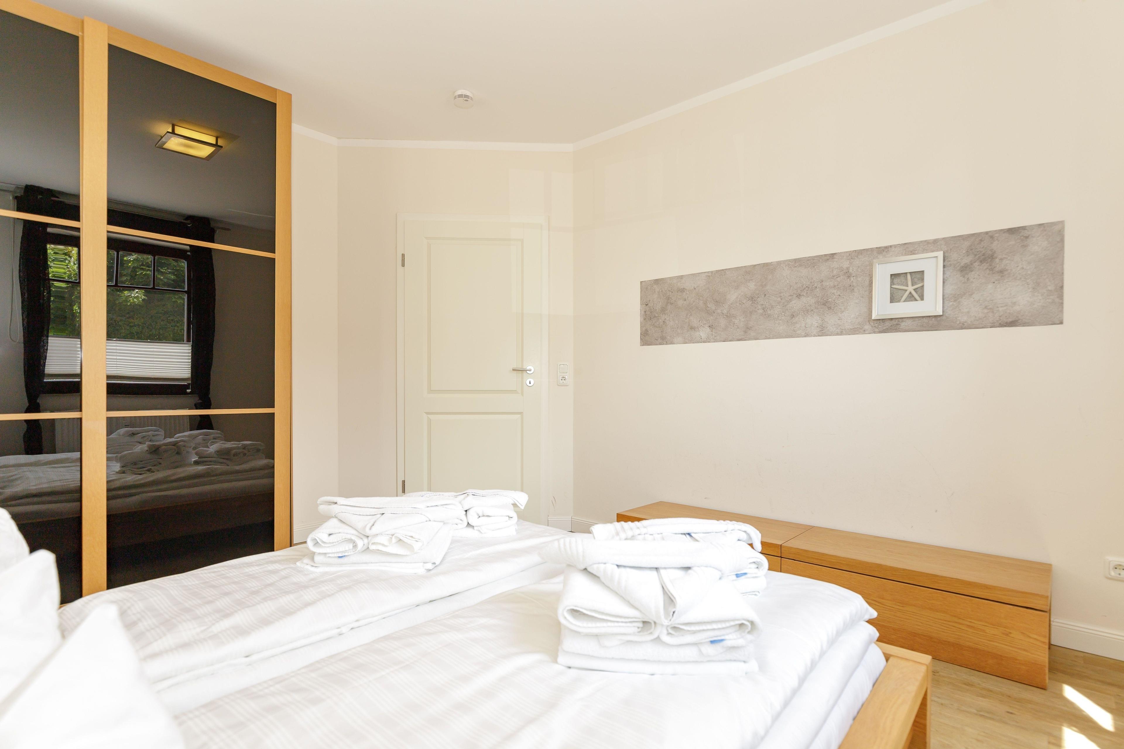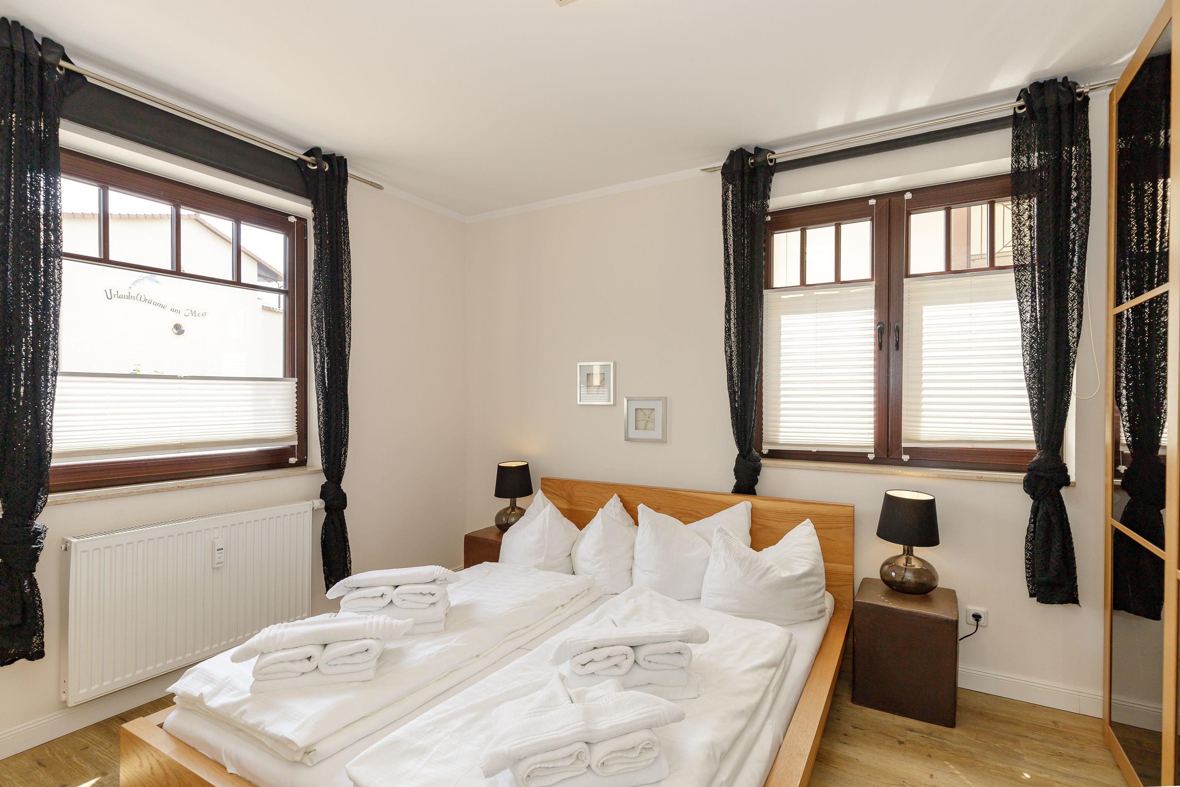 Im Schlafzimmer können Sie im Doppelbett den erholsamen Schlaf finden. Ein Kleiderschrank für Ihre Urlaubsgarderobe finden Sie selbstverständlich auch.