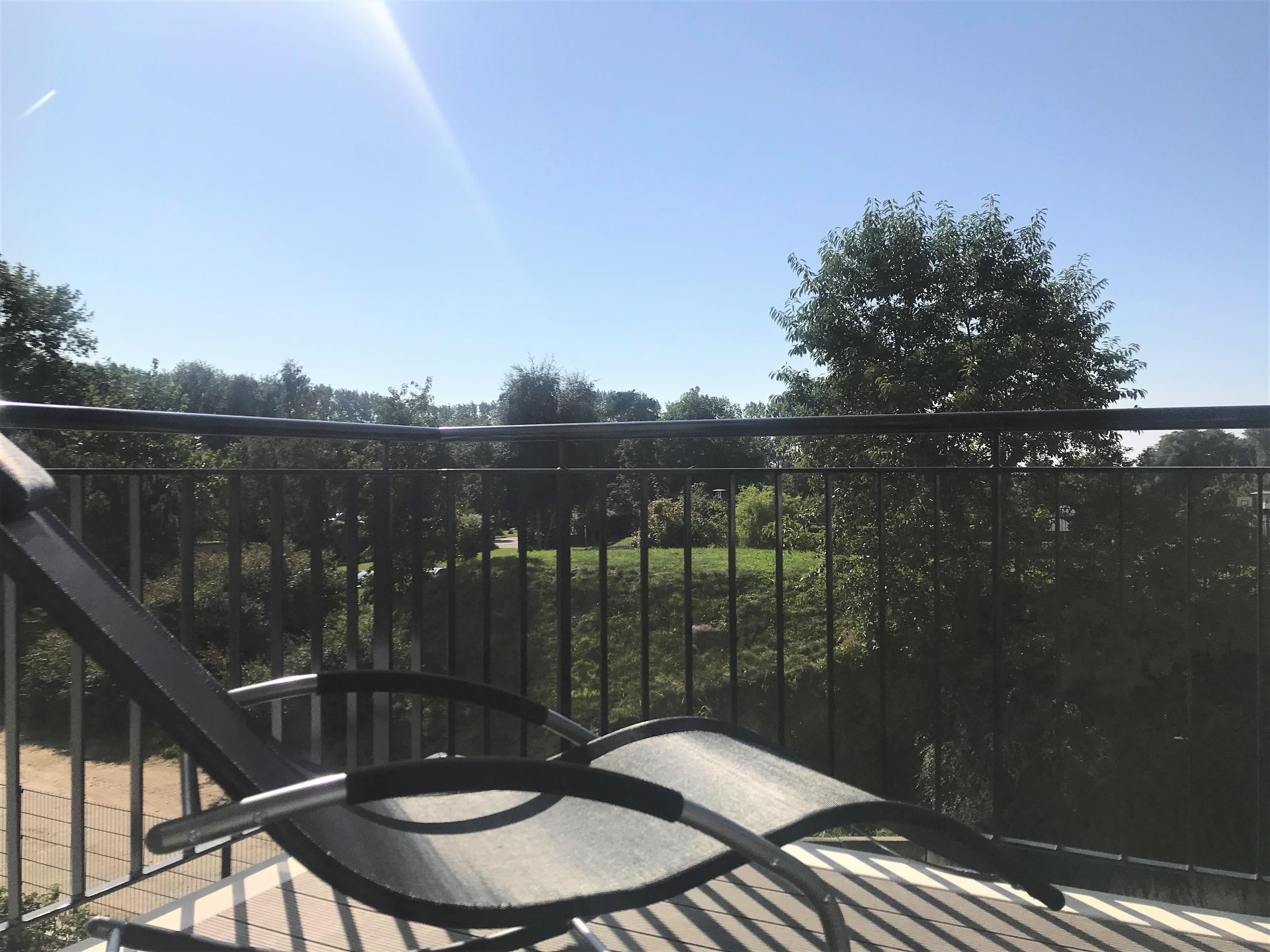 Über den Wohnbereich gelangen Sie auf den schönen, nach Westen ausgerichteten Balkon, auf dem Sie wunderbar frühstücken, entspannen und sonnen oder aber auch den Abend gemütlich bei einem Glas Wein ausklingen lassen können.
