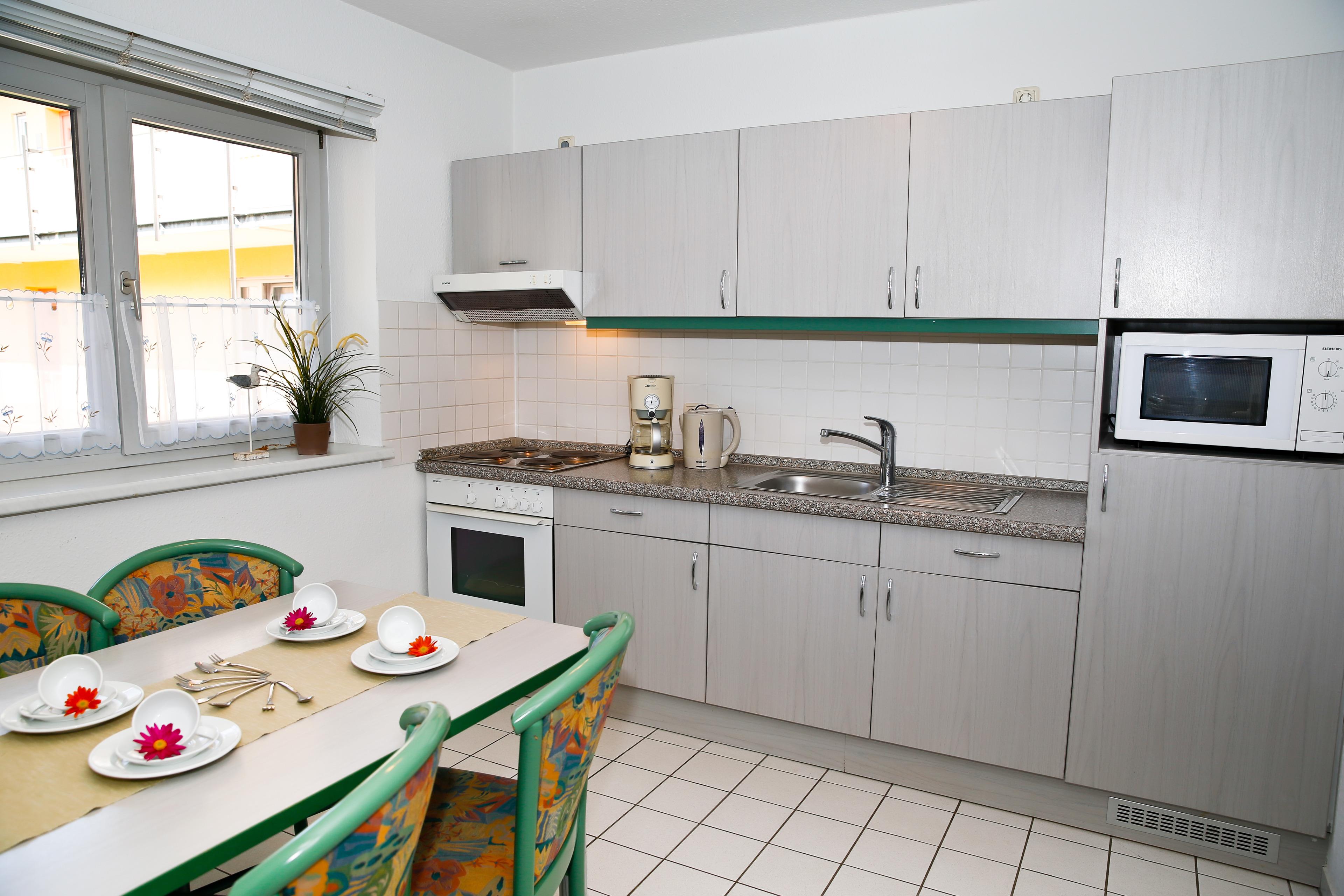 In der gut ausgestatteten Küche werden Sie nichts vermissen und am separaten Essplatz finden 4 Personen bequem Platz.