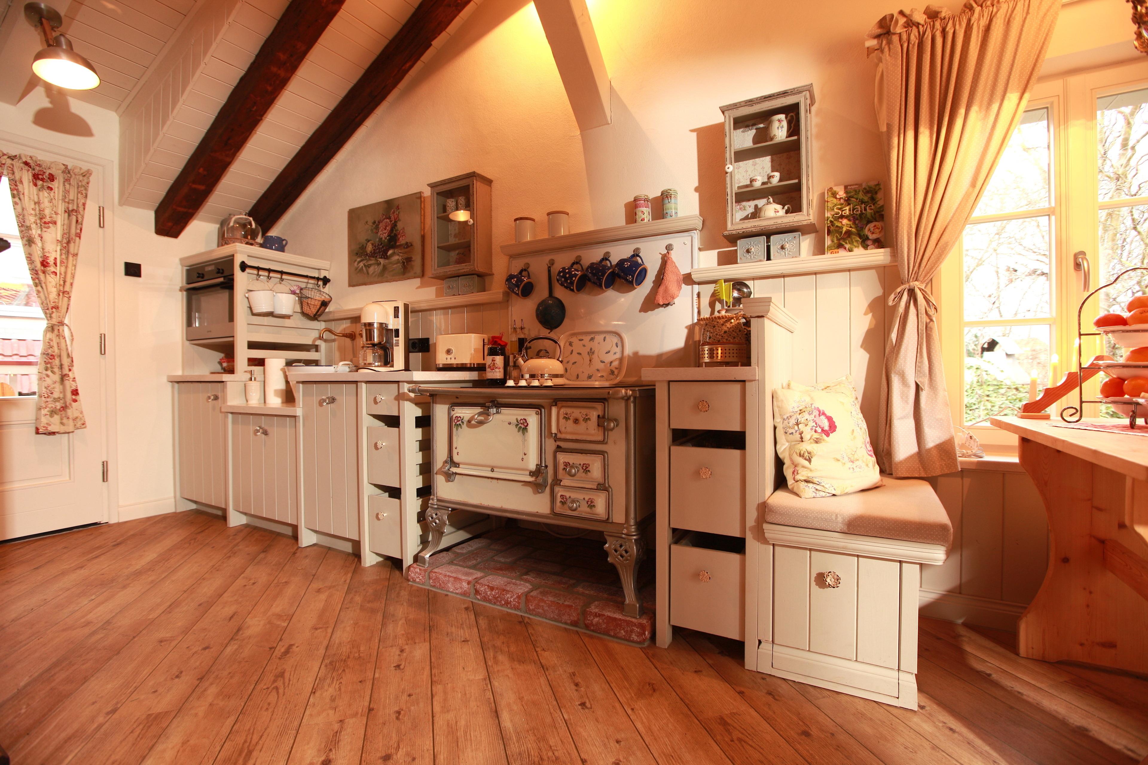 Unsere "Gartenlaube" befindet sich unter dem Dach unseres "Gartenhauses". Eine kleine Küche mit nostalgischem Küchenofen (modernisiert mit Induktion) lädt zum Brutzeln und Kochen ein. In der gemütlichen Kamin-Lounge mit TV und großer Kuschelecke kann man nicht nur an kalten Wintertagen die Zeit vergessen...