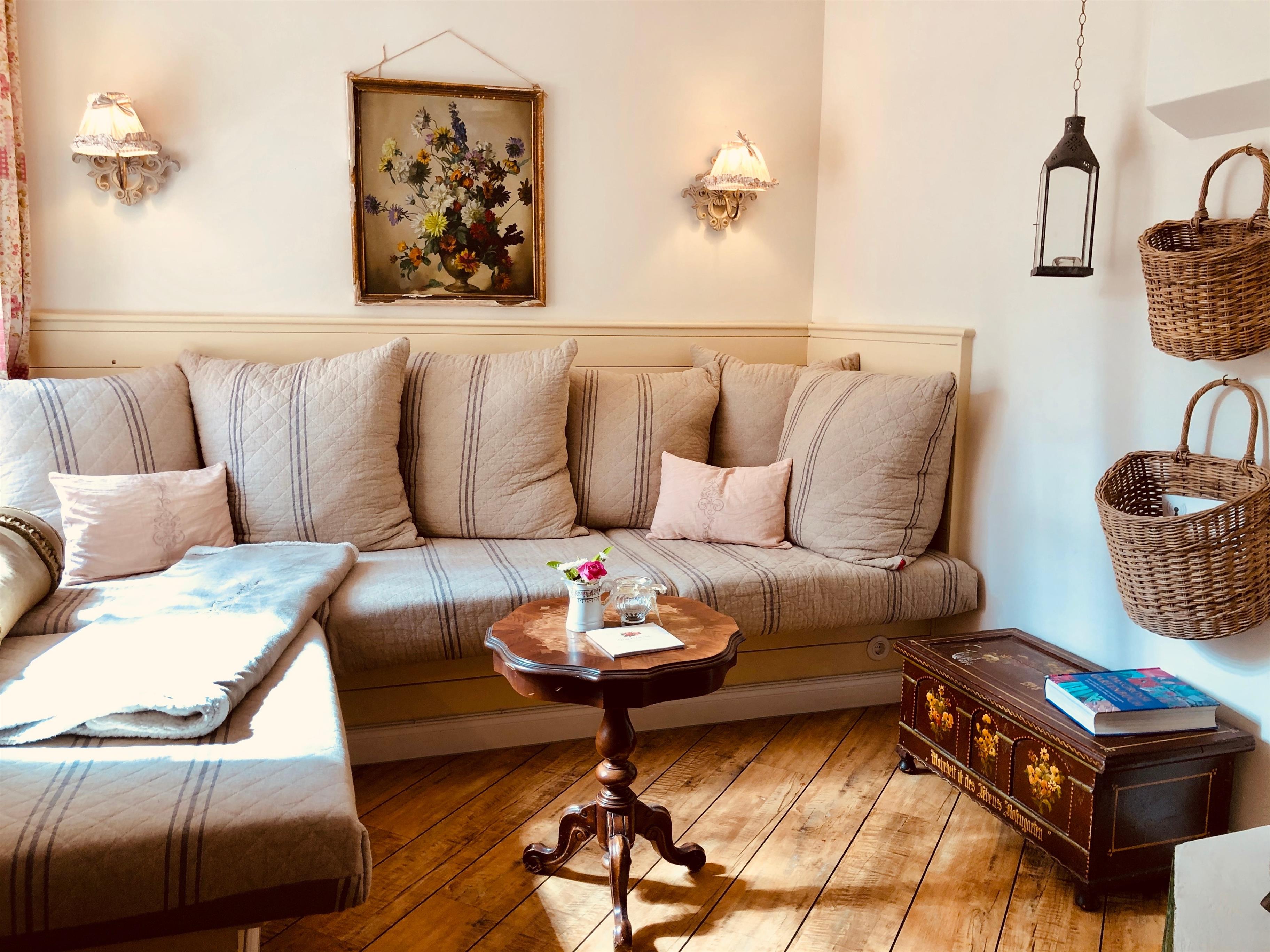 Im Wohnbereich am Holzofenkamin wartet auf Sie ein großes Kuschel-Sofa (& TV) mit Blick in den Garten. Das Schlafzimmer ist durch eine große Holzflügeltür getrennt und ein "Apfeltraumbett" (180x200) wartet auf Sie und Ihre Träume. Das Badezimmer ist mit großer Dusche und separatem WC ausgestattet und weckt vielleicht Erinnerungen...