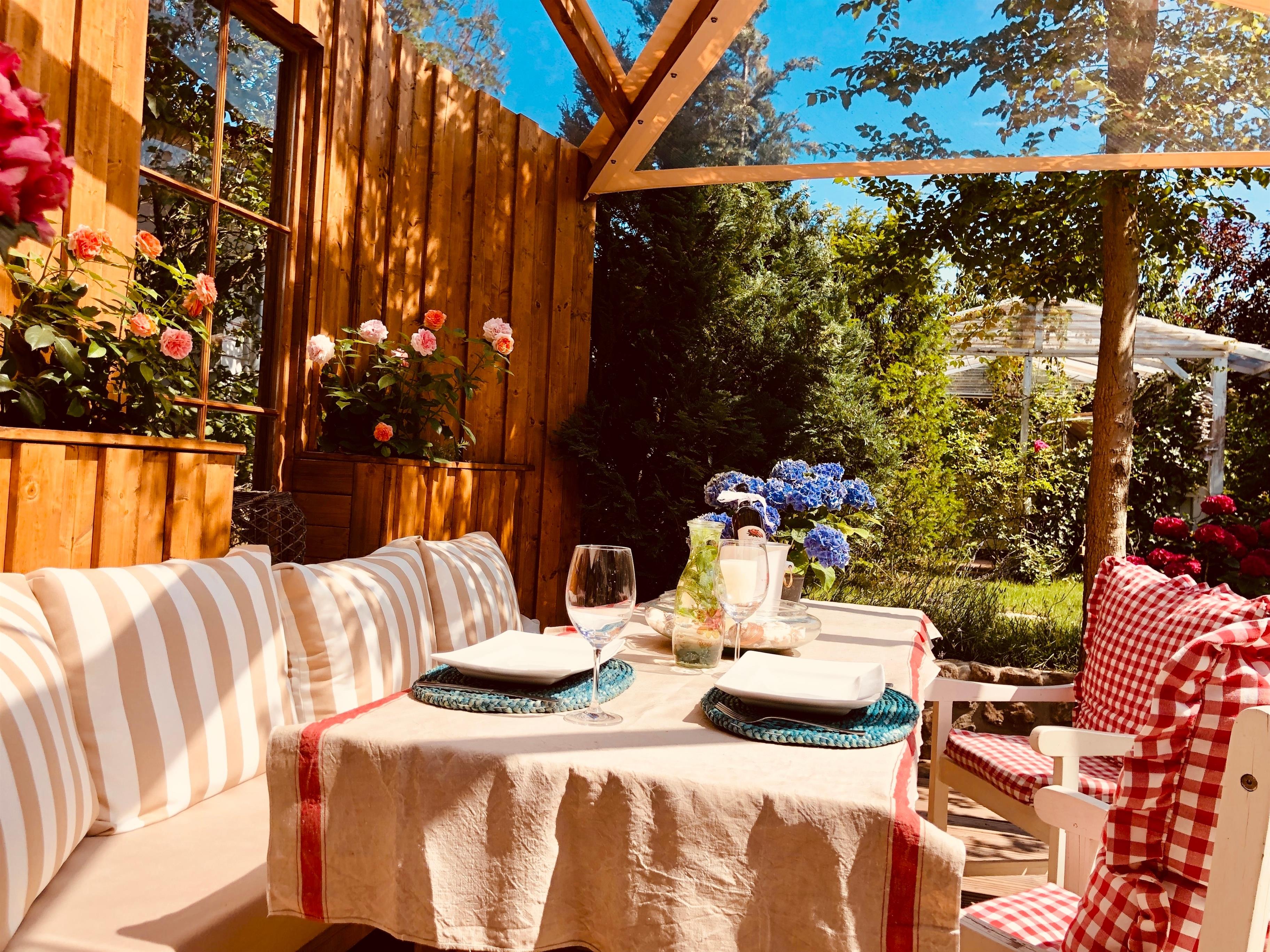 Gesamtgröße 90m², zuzüglich 17qm überdachter Südterrasse, kostenfreies WLAN, Kamin, 1 PKW Stellplatz, Nutzung des Garten SPA mit Schwimmteich, Gartensauna