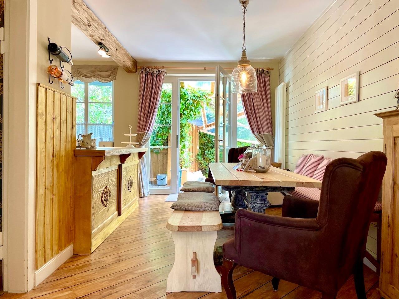 In unserer Ferienwohnung "Strandlust" erwartet Sie ein Kaminzimmer mit Kuschelecke, eine komplett eingerichtete Wohnküche mit einem großen Familientisch mit Blick und direktem Zugang in den Garten auf Ihre Strandlust-Terrasse. Diese lädt Sie im Sommer zum Frühstücken sowie Grillen und geschützt im Winter zum Glühwein trinken ein.