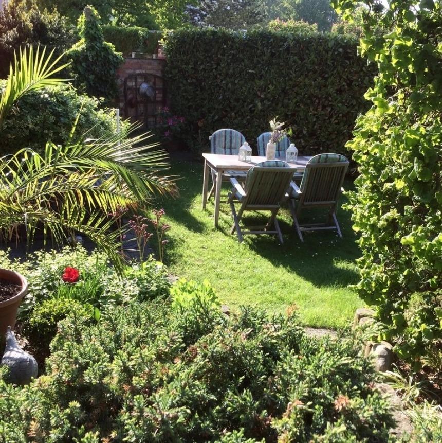 Im Garten steht eine Sitzgruppe und ein Grill zur Verfügung.