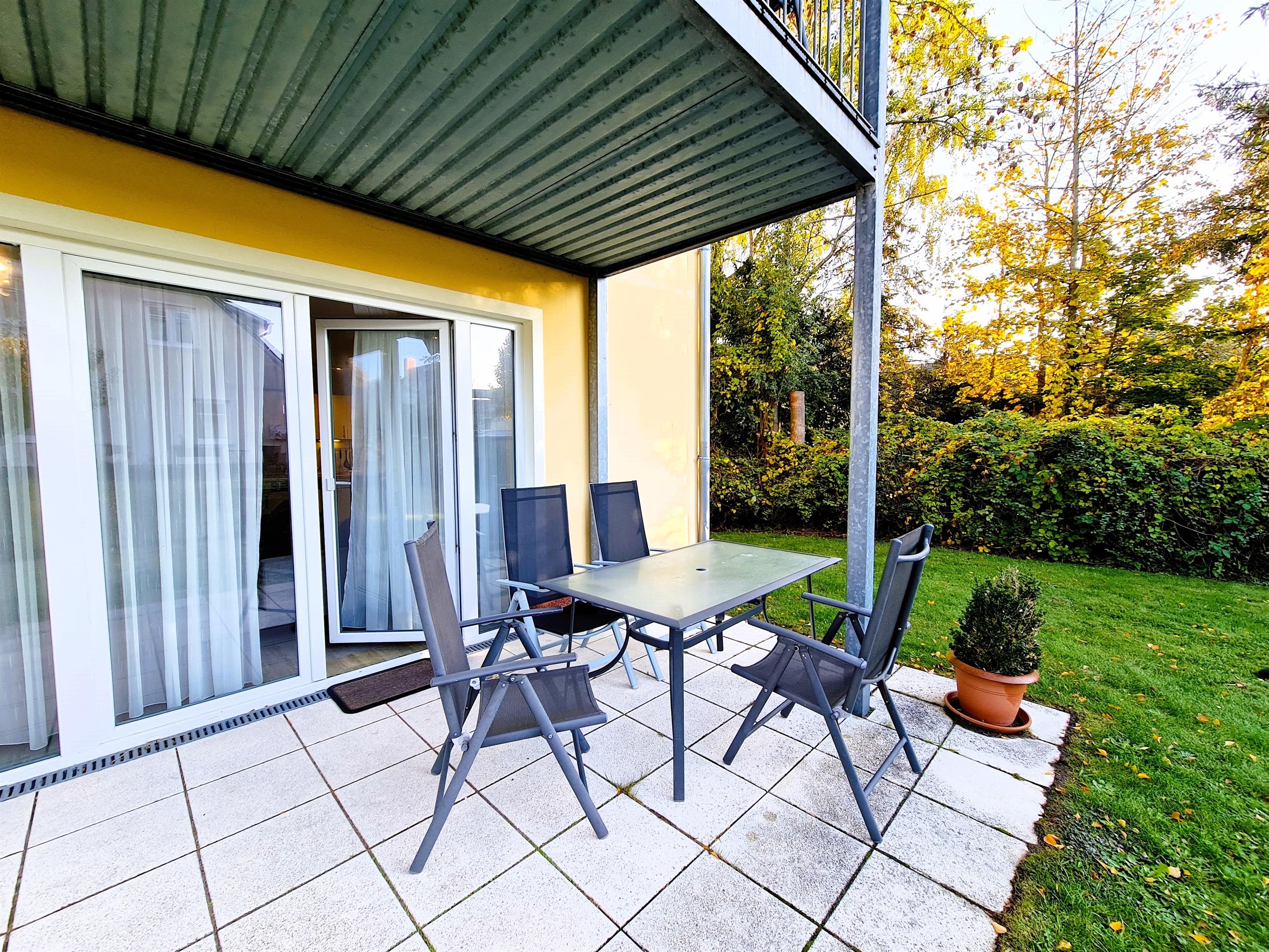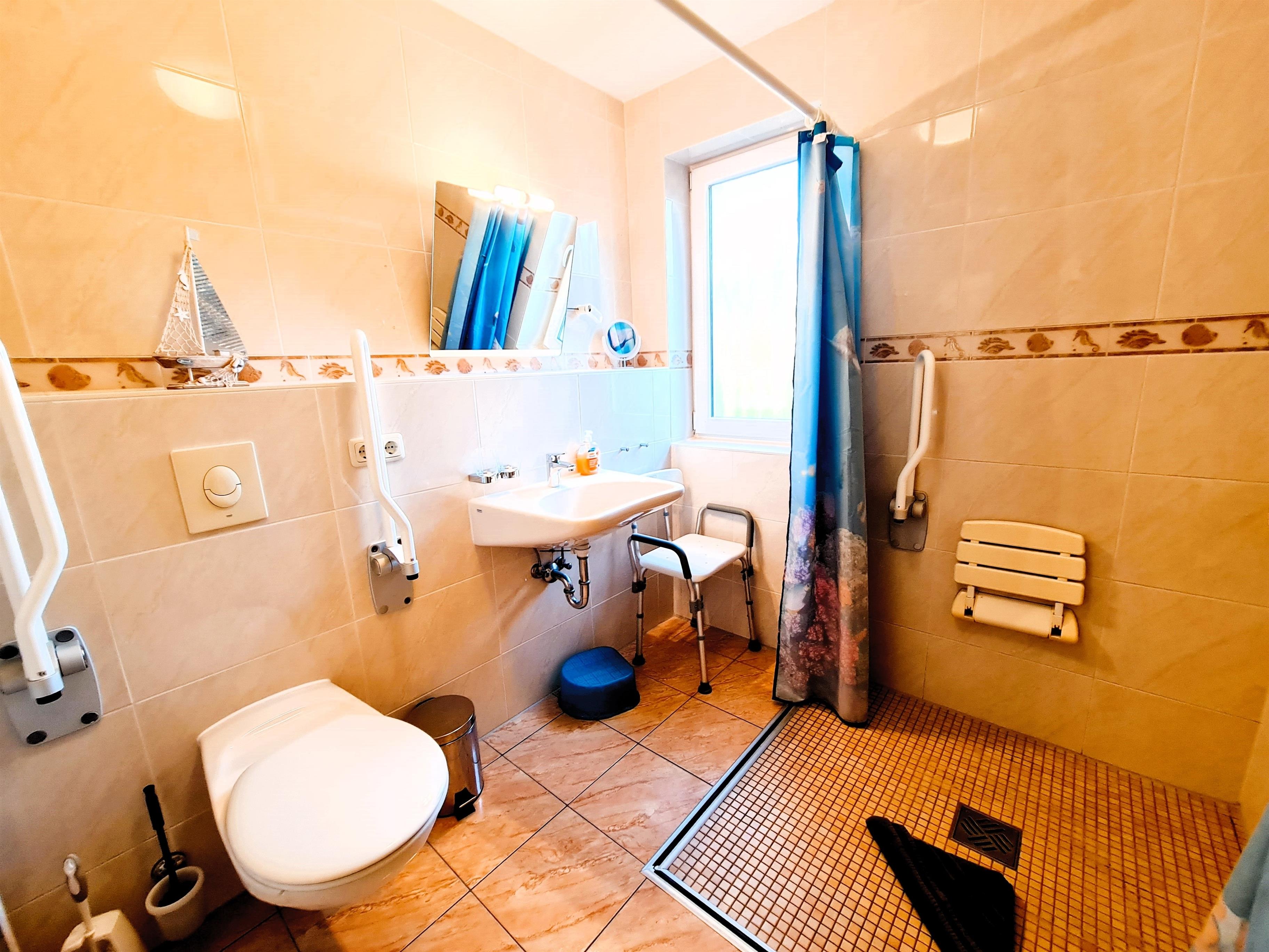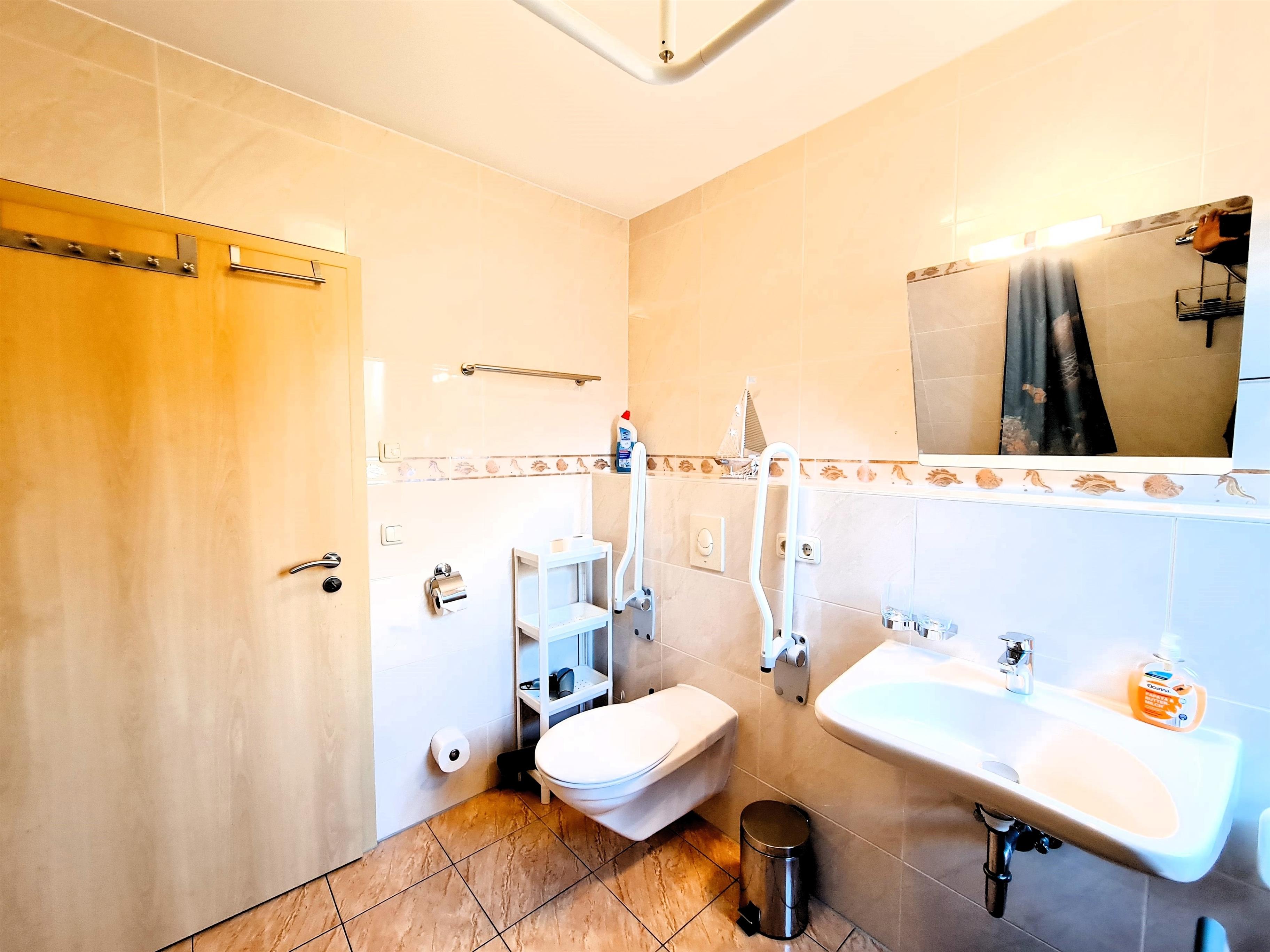 Die Wohnung 1 im Erdgeschoss ist sehr liebevoll, mit Blick für das Detail eingerichtet. Die Wohnung ist rollstuhlfreundlich und verfügt über 2 Schlafzimmer, einen großzügigen Wohn-, Koch- und Essbereich, einem rollstuhlgerechten Bad mit Dusche, einem Gäste-WC mit Waschmaschine, einer Terrasse mit anschließendem Garten.