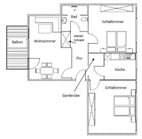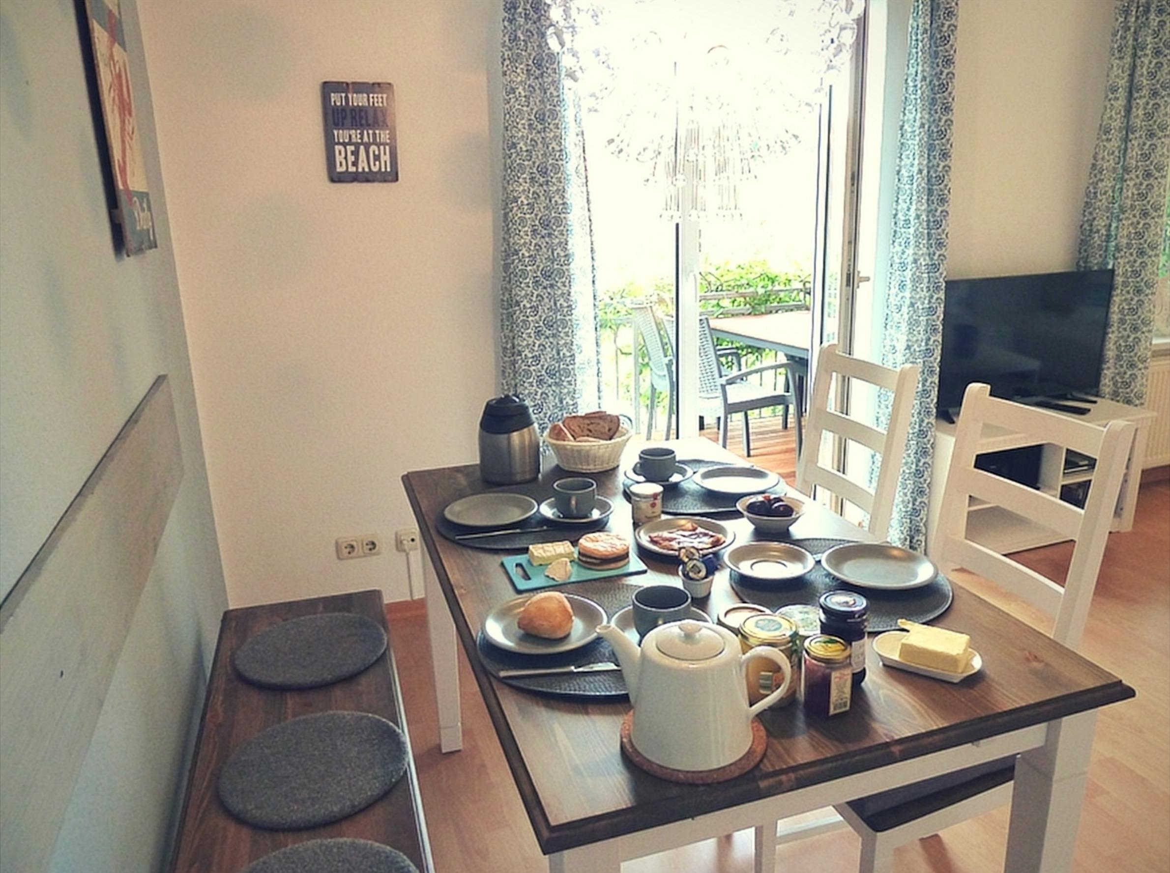 Diese Ferienwohnung in Strandnähe ist besonders geräumig. Für Familien oder Freundeskreise von 4-5 Personen ist sie mit 2 Schlafzimmern, großem Wohn- und Essbereich und einem großen, geschützten Balkon mit viiiiel Abendsonne ideal.
