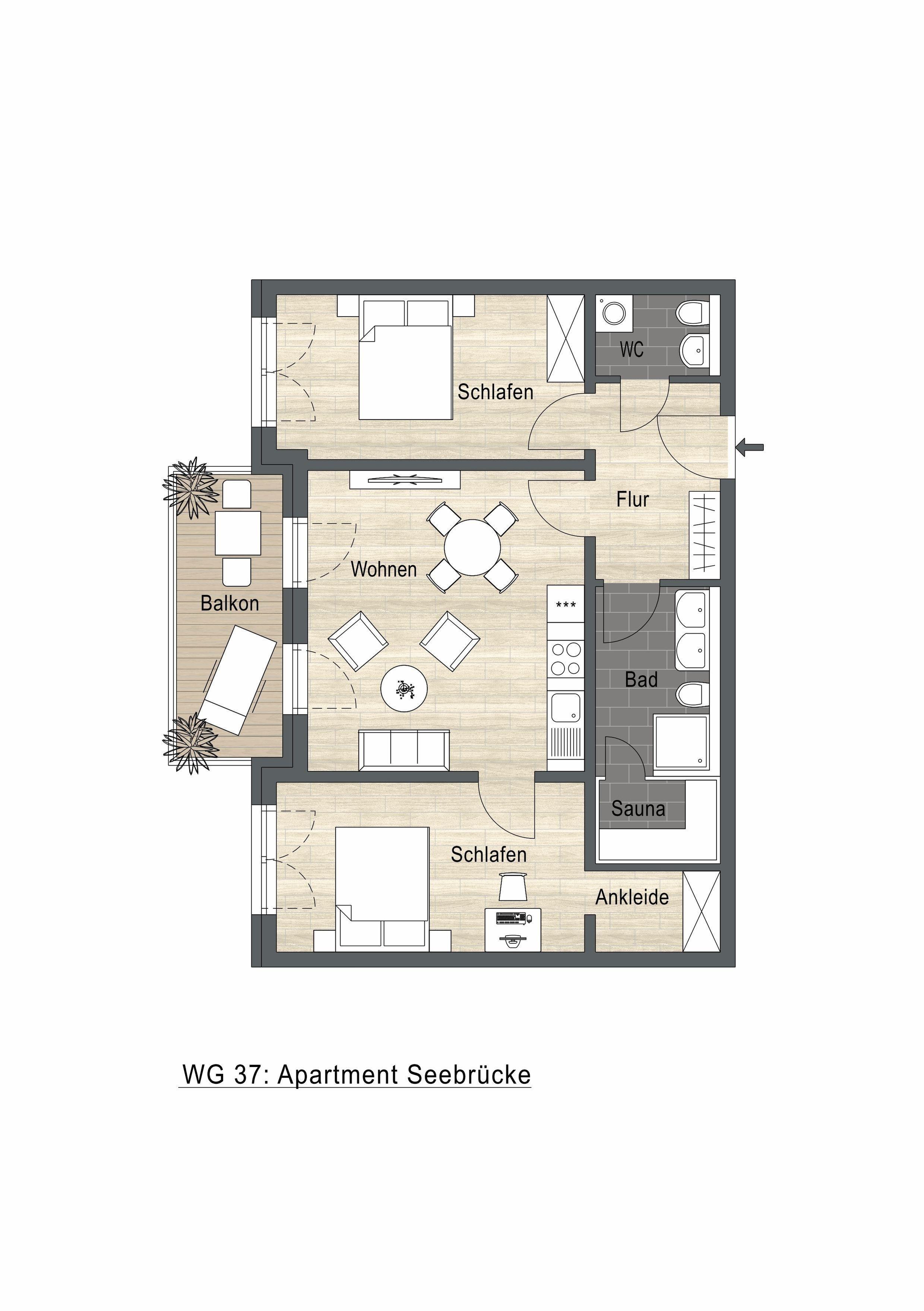 Das Bad verfügt über eine begehbare Dusche. Ein moderner Waschtisch mit genügend Ablagemöglichkeiten für Ihre Utensilien, ein großer Spiegel und ein Föhn sind vorhanden. Ein Highlight ist Ihre private Sauna, welche Sie uneingeschränkt nutzen können.