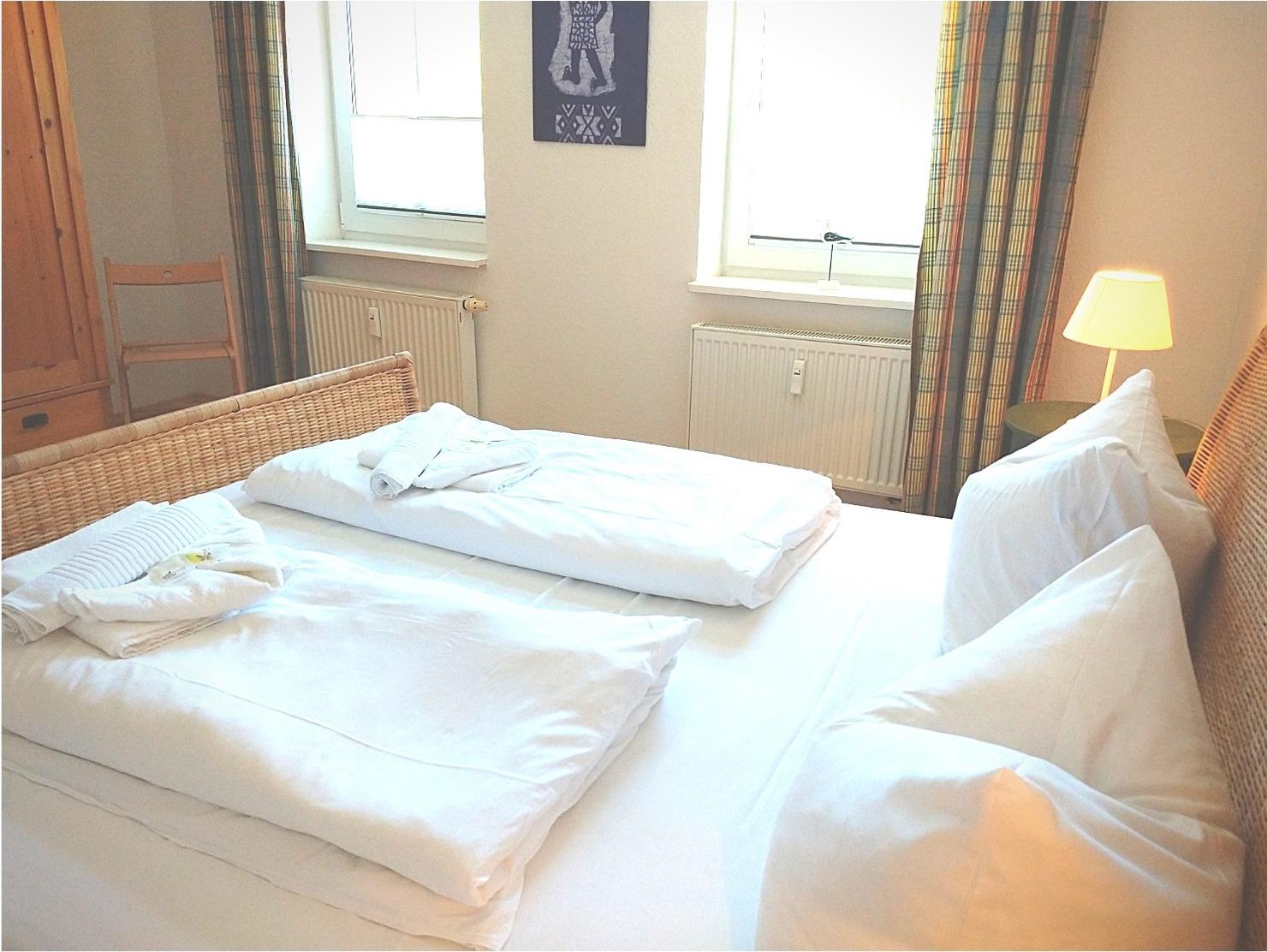 - ein großes Schlafzimmer mit Doppelbett (ein Kinderbettchen lässt sich hier zusätzlich problemlos unterbringen)
