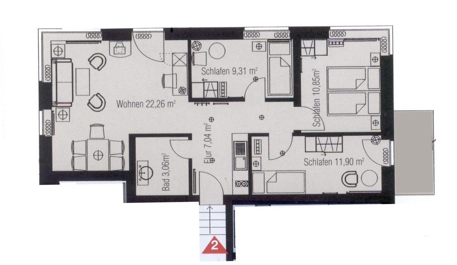 Die Wohnung besitzt zwei Balkone. Der ruhige Balkon zur Süd-Ostseite ist vom Wohnzimmer aus zu begehen. Den Balkon zur Westseite erreichen Sie über das Kinderzimmer.