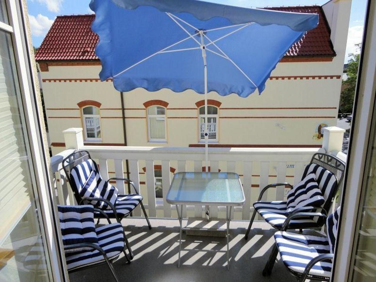 Vom Wohnbereich aus gelangen Sie auf den Balkon, der zur Südseite ausgerichtet ist. Hier können Sie mit der Familie auf den bereitstehenden Balkonmöbeln die Sonne genießen und die Seele baumeln lassen.