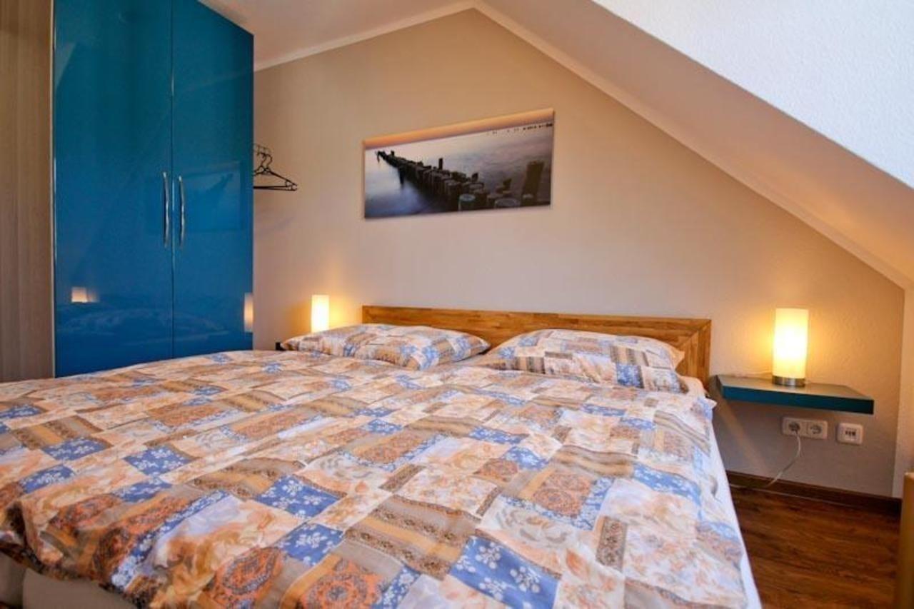 Die nach Westen ausgerichteten Schlafzimmer sind vom Wohnzimmer bzw. über den Flur zu erreichen. Beide Zimmer sind mit bequemen Doppelbetten in der Größe 1,80 x 2,00 m sowie geräumigen Kleiderschränken für Ihre Urlaubsgarderobe eingerichtet.