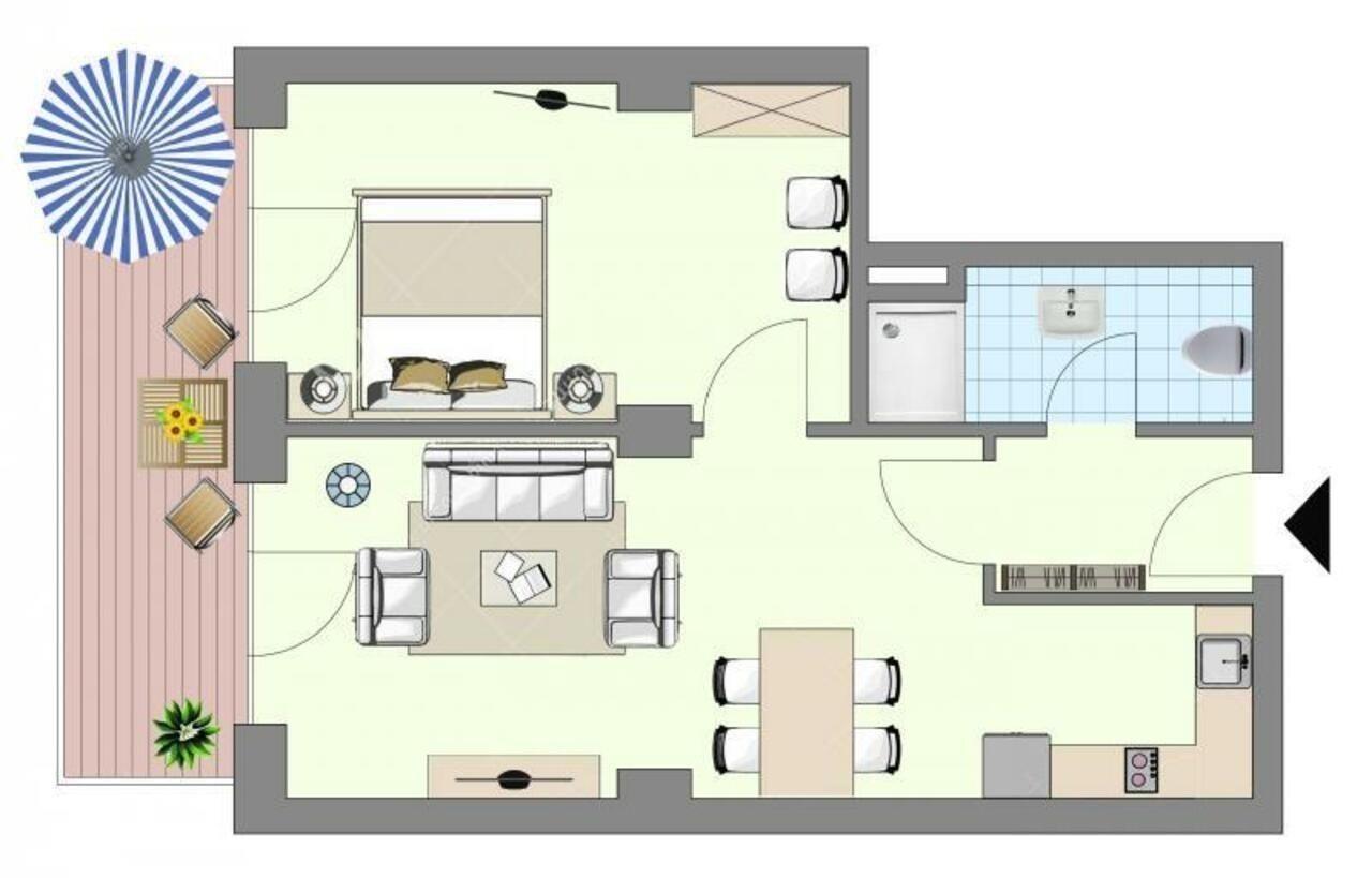 Sie haben sowohl vom Wohn- als auch vom Schlafzimmer Zugang zu Ihrem großzügigen Balkon.