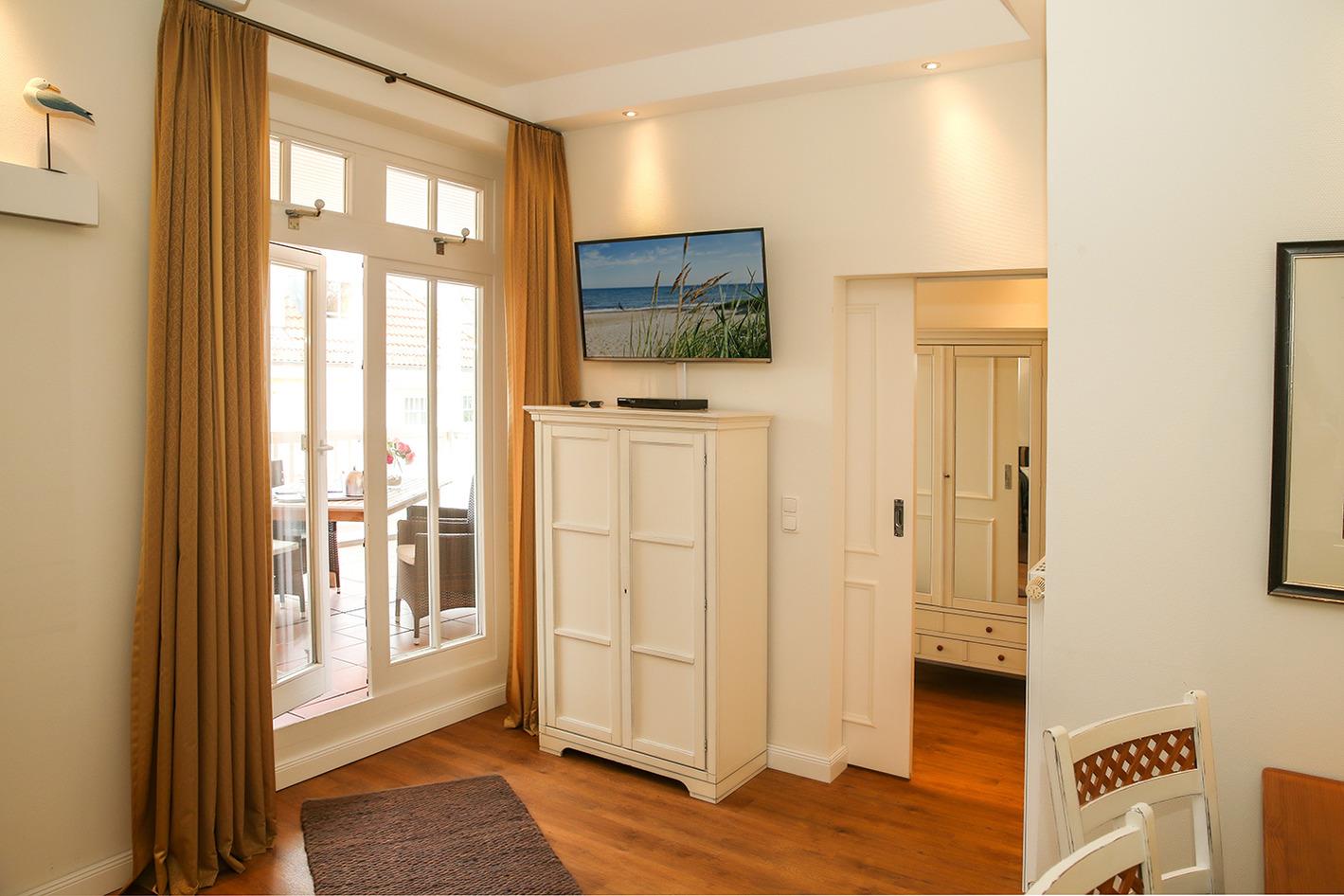 Die Ferienwohnunge verfügt über einen kostenfreien W-LAN Hotspot. Der Westbalkon lädt zum Verweilen ein. Im Haus befindet sich ein Fahrstuhl.