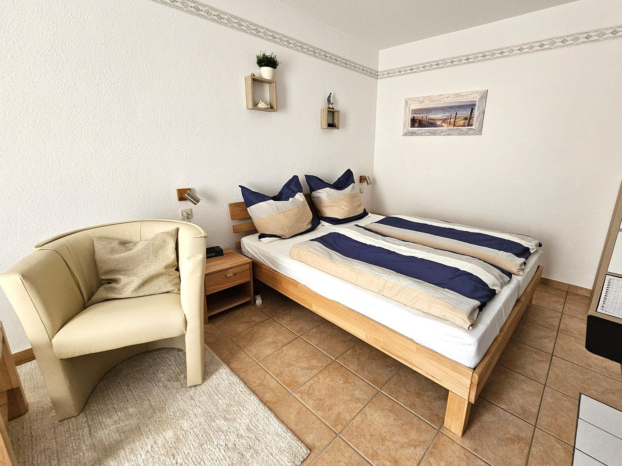 Möchten Sie die Ferienwohnung mit drei Personen aufsuchen, ist dies grundsätzlich möglich. Wir stellen Ihnen für die weitere Person eine Zustell-Gästematratze, eine Bettdecke, ein Kopfkissen und einen Klappstuhl zur Verfügung - es wird dann allerdings ein bisschen enger.