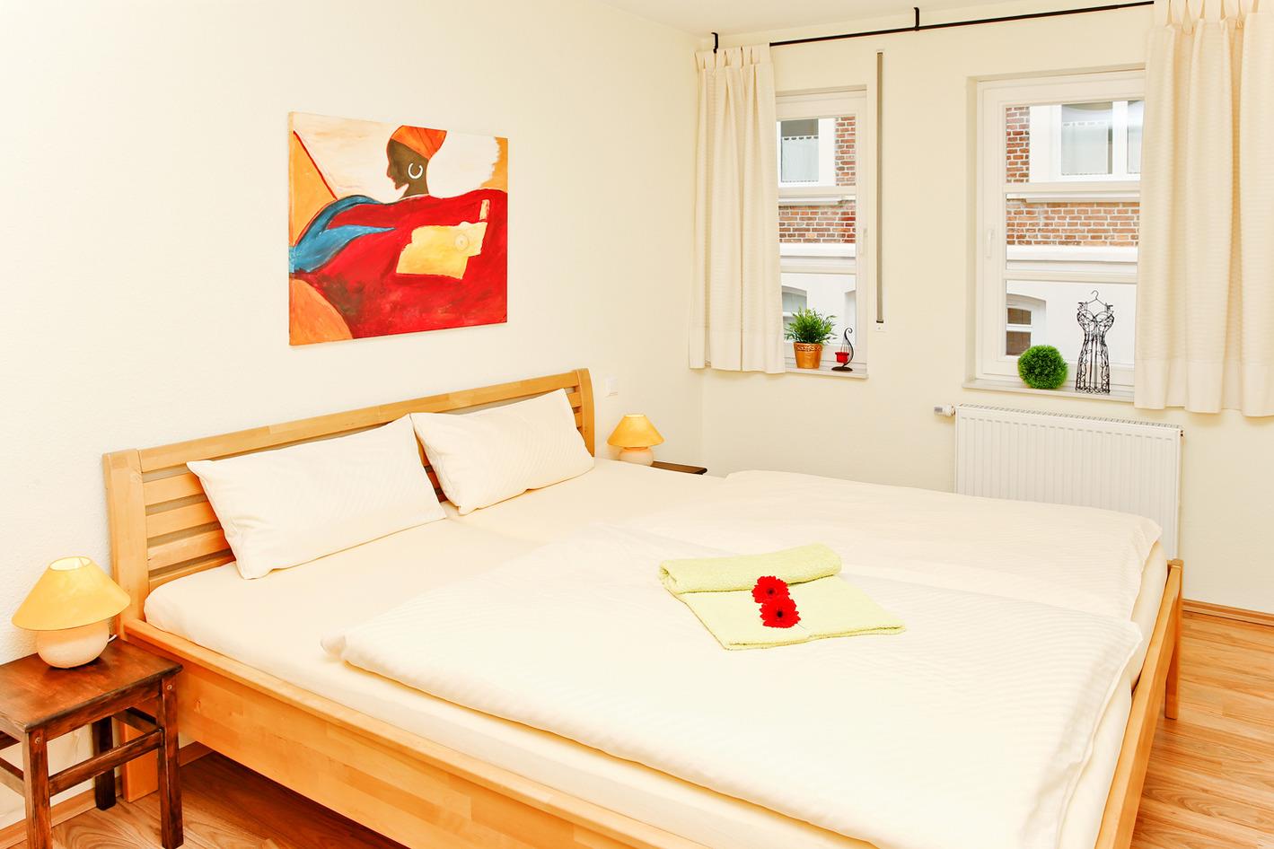 Beide Schlafzimmer sind eingerichtet mit einem Doppelbett (1,80 m breit)