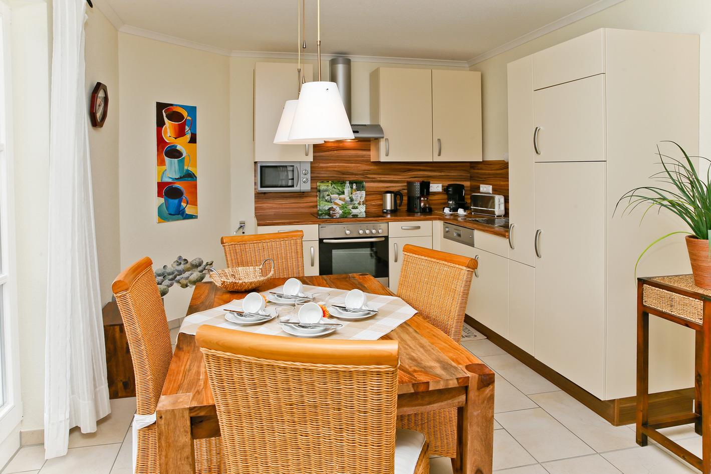 Die komplett ausgestattete Einbauküche verfügt über einen 4-Platten-Ceran