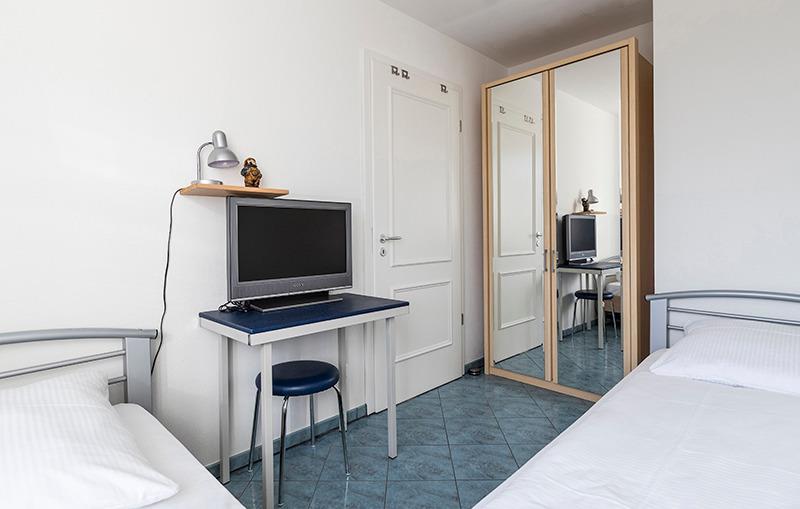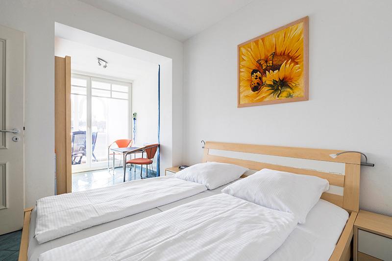 In einem Schlafzimmer befindet sich ein Doppelbett und im weiteren Schlafzimmer 2 Einzelbetten. Das Duschbad/WC mit Badewanne sowie ein Gäste- WC ergänzen die Wohnung.