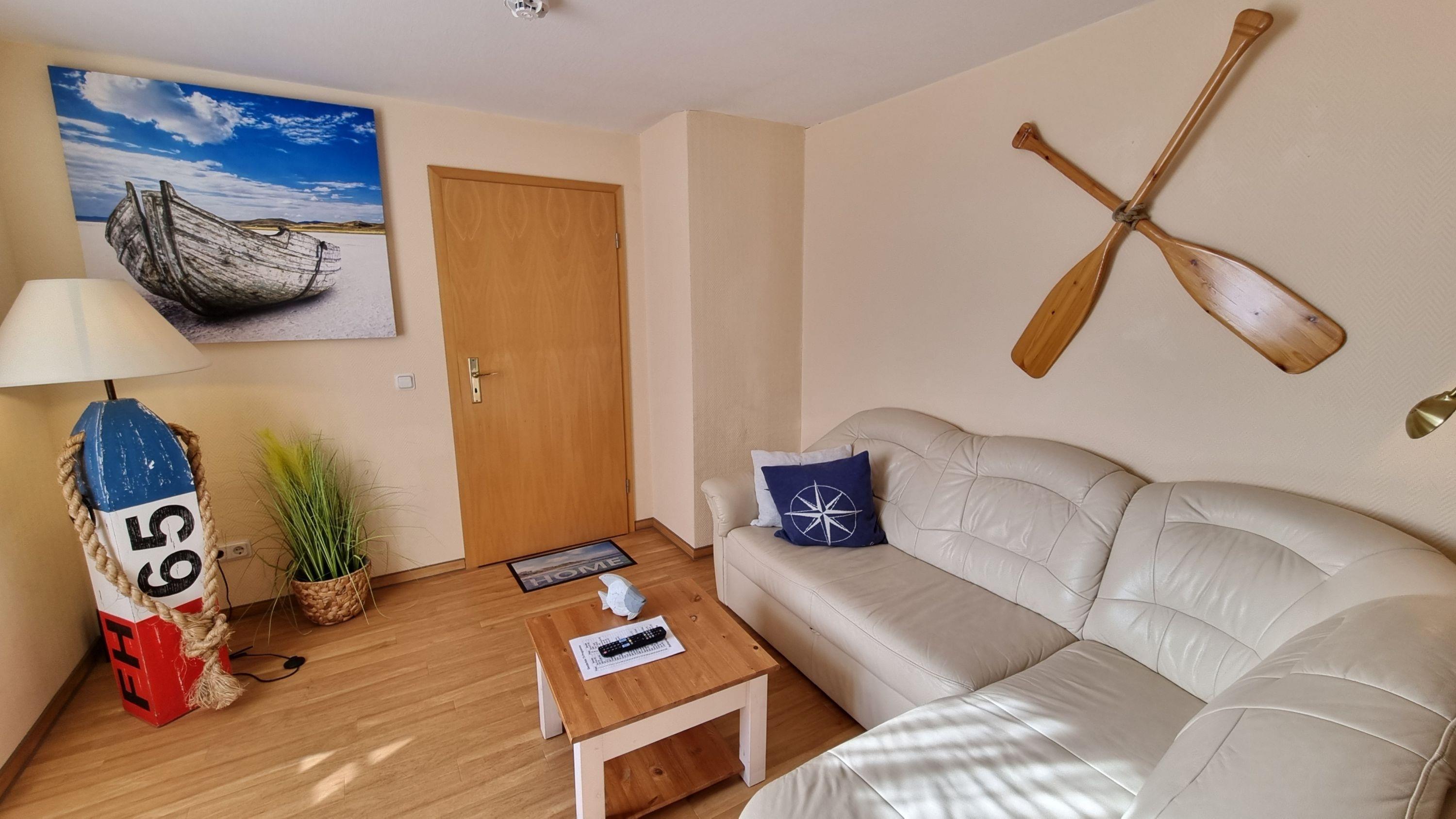 Im Wohnzimmer ist sowohl ein Flachbildfernseher als auch eine Schlafcouch vorhanden. Zudem steht ein kostenfreier W-LAN HotSpot zur Verfügung.