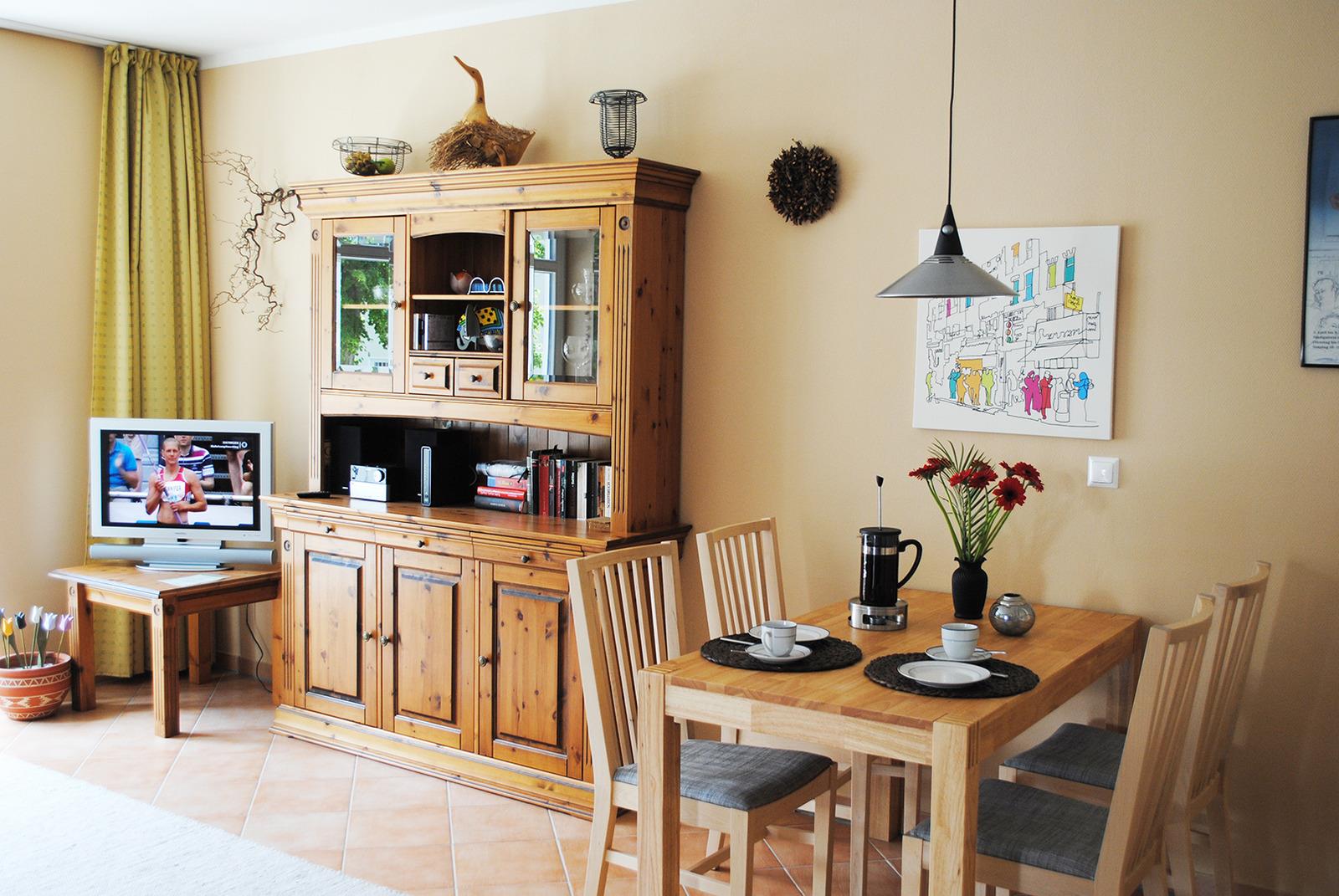 Farb-TV und Hifi-Anlage gehören zur Einrichtung dazu. Die Ferienwohnung