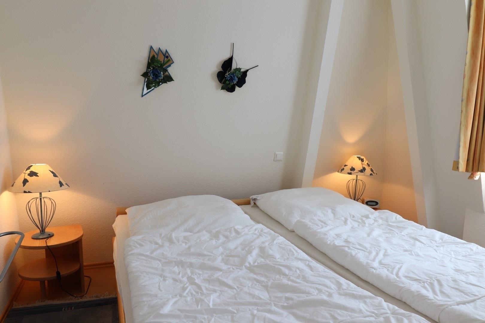Im großen Schlafzimmer finden Sie ein Doppelbett vor. Der Wohnbereich