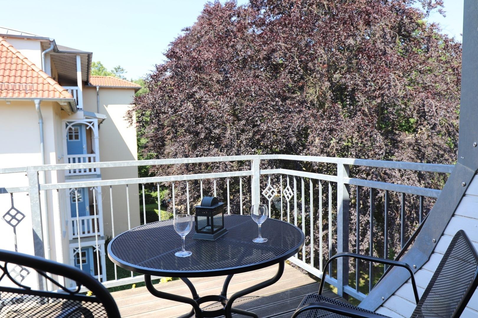 Ein Balkon lädt zum Verweilen ein. Ein Duschbad/WC rundet die Ferienwohnung ab.