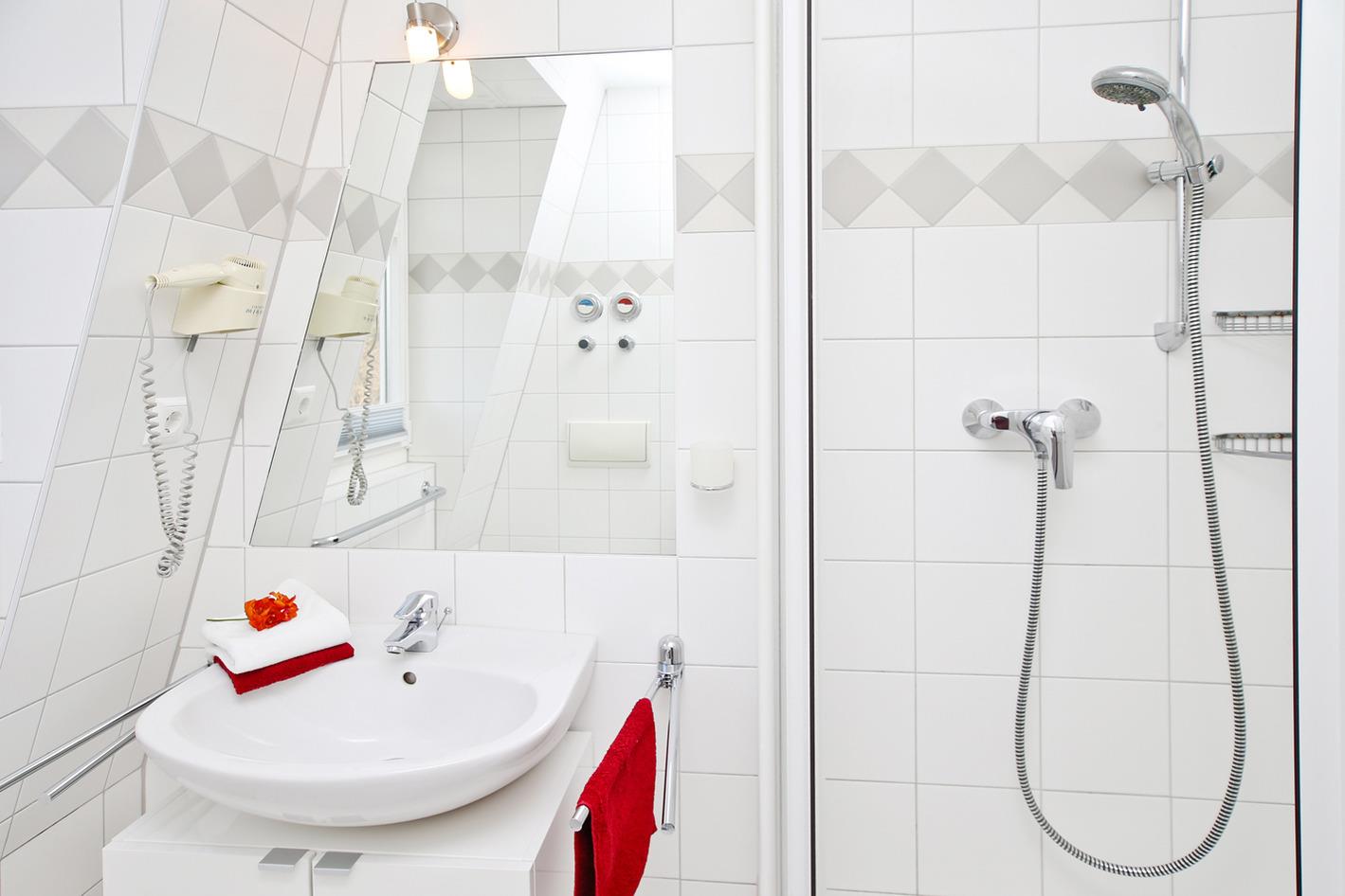 Ein Balkon lädt zum Verweilen ein. Ein Duschbad/WC rundet die Ferienwohnung ab.