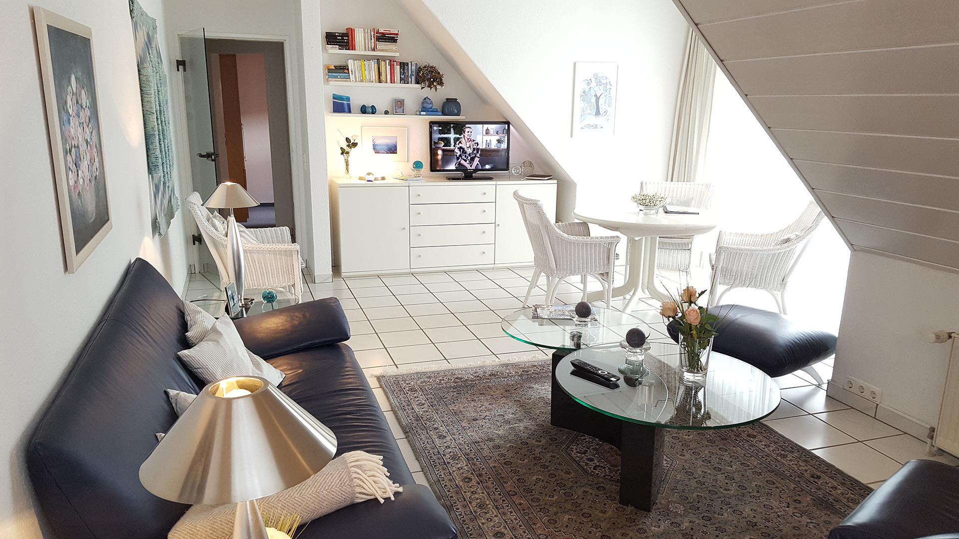 Die moderne Ferienwohnung mit Balkon liegt im Dachgeschoß (3. OG) des Hauses in der Poststr. 2 und zur Südseite ausgerichtet.