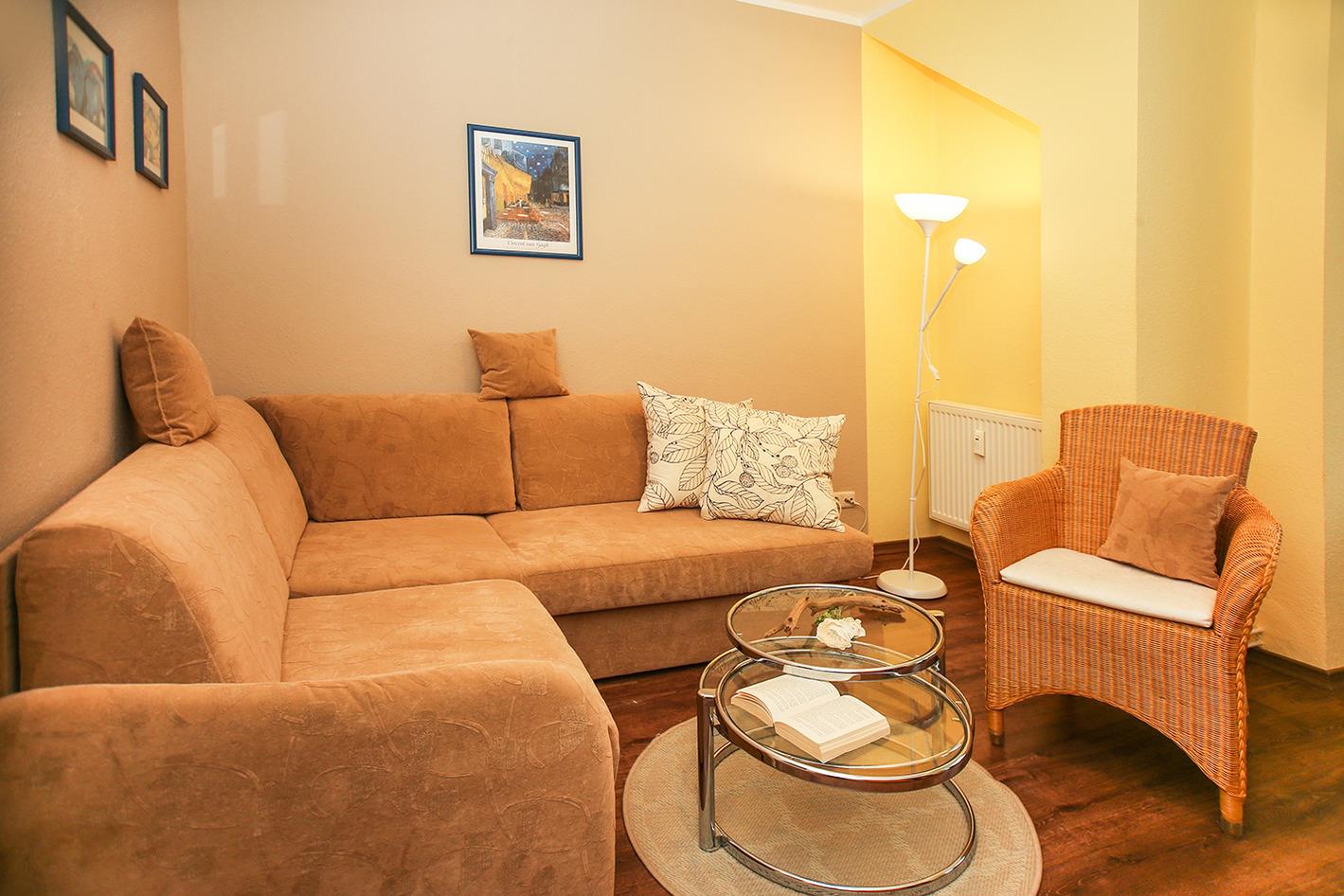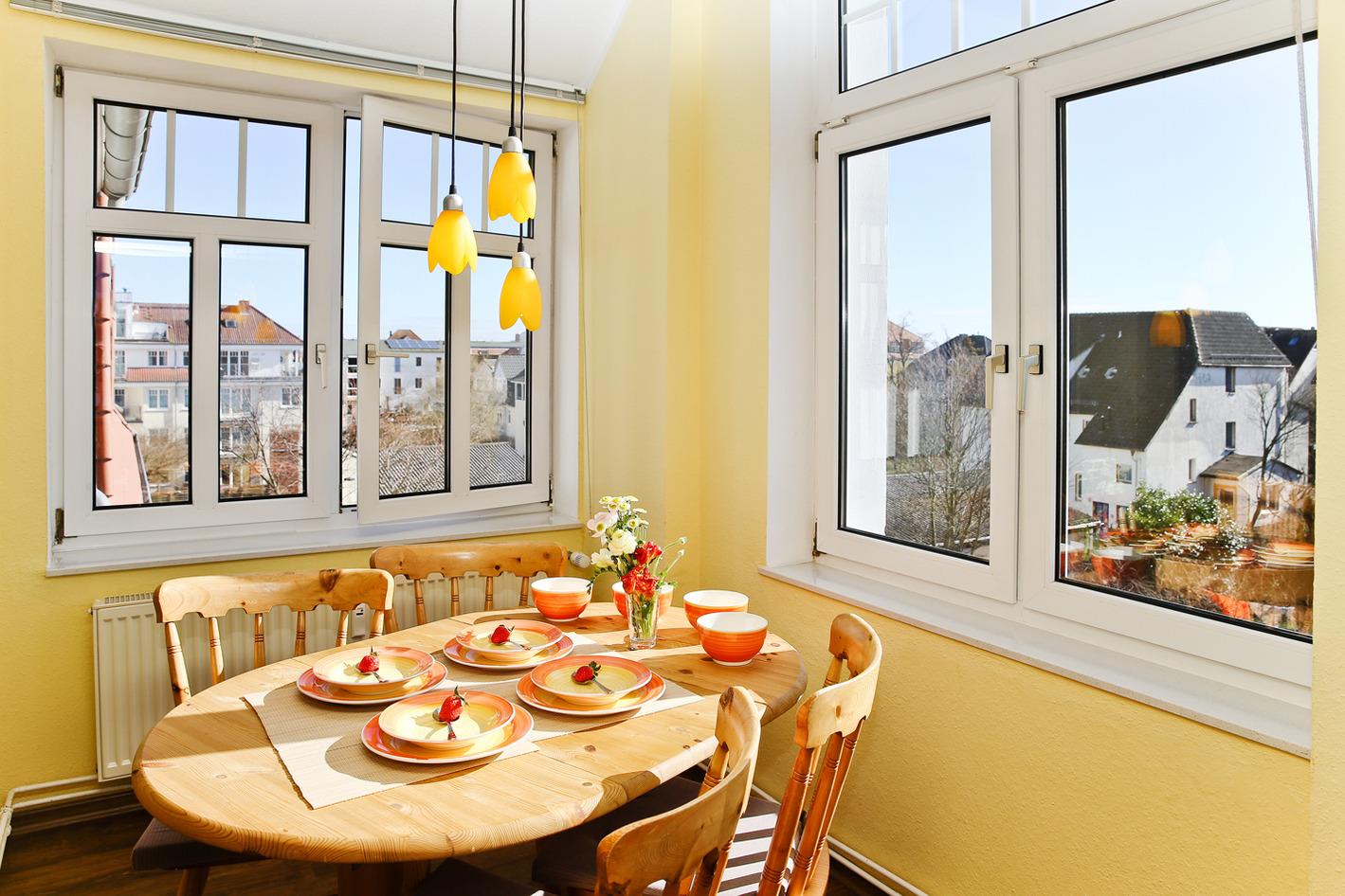 Die 2-Zimmer-Ferienwohnung liegt im 2. Obergeschoss mit einem Erker. Mit 45 m² bietet Sie bis zu 3 Personen Platz für einen erholsamen Aufenthalt.