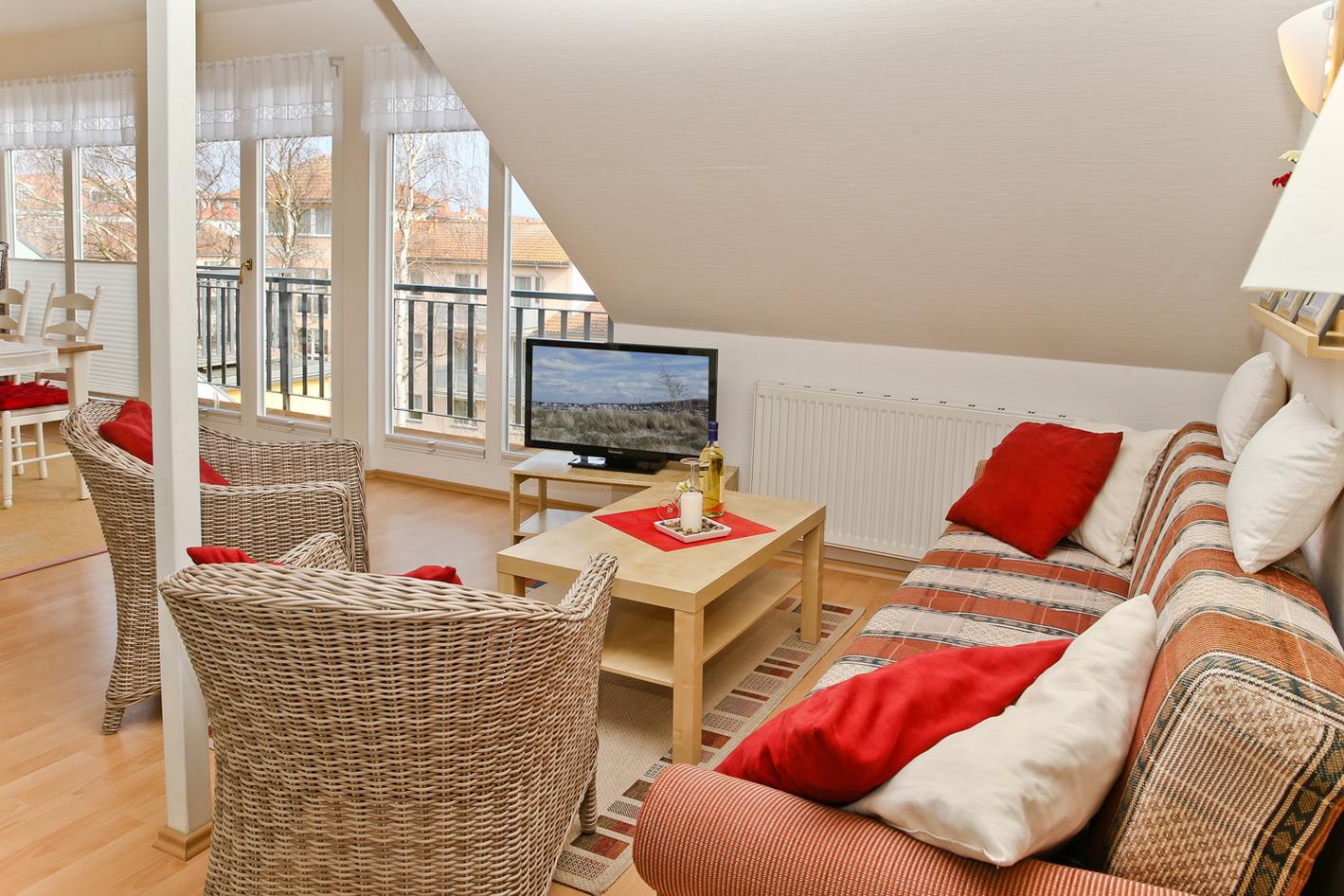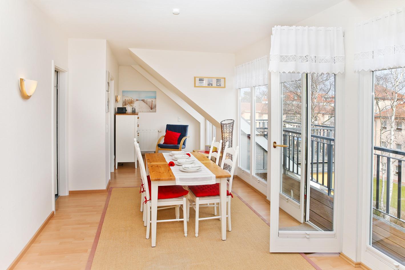 Auf ca. 68 m² bietet die Ferienwohnung im 2. Obergeschoß bis zu 4 Personen genügend Platz für einen erholsamen Aufenthalt in Kühlungsborn.