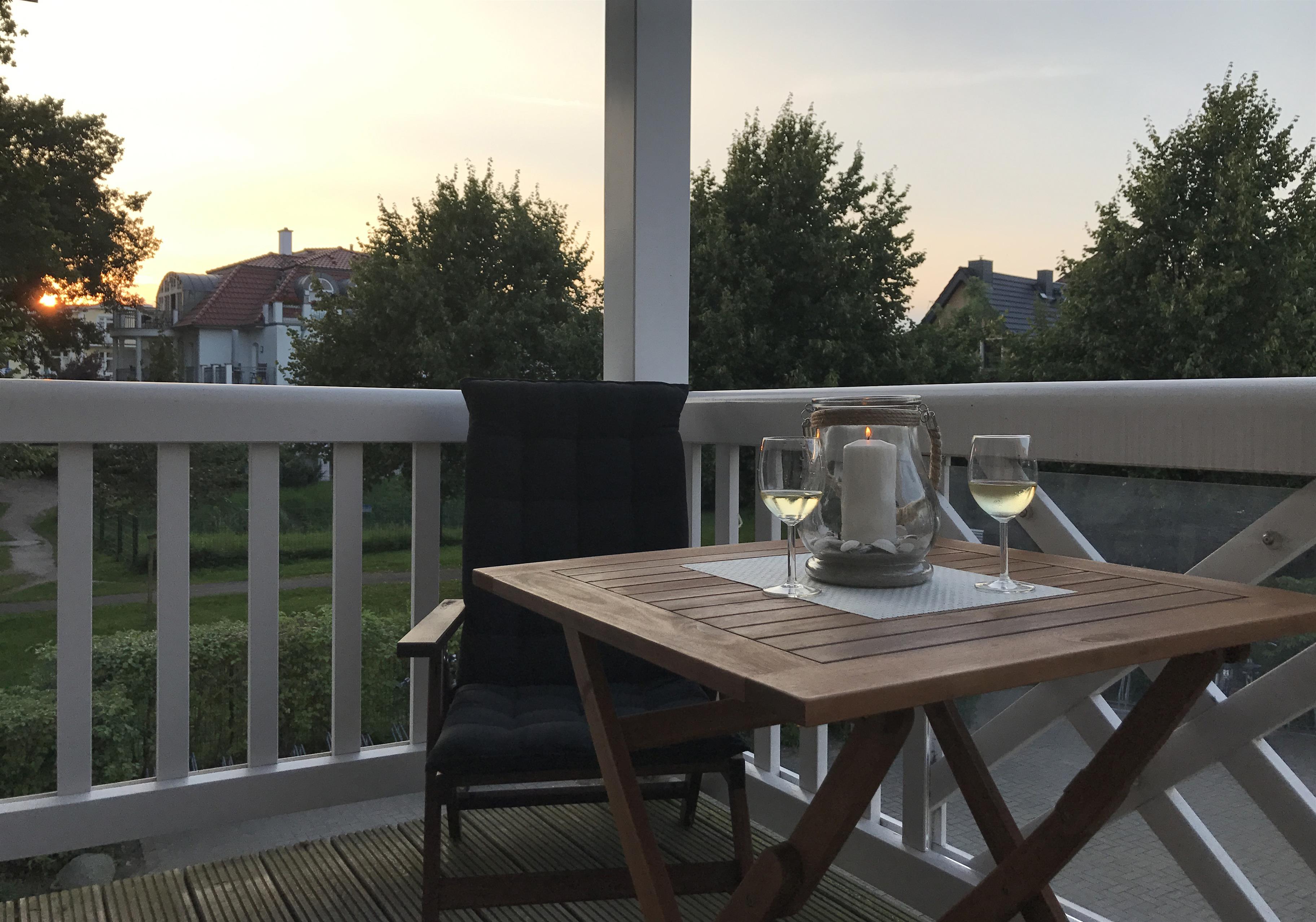 Der möblierte Balkon lädt zum Entspannen und Genießen ein.