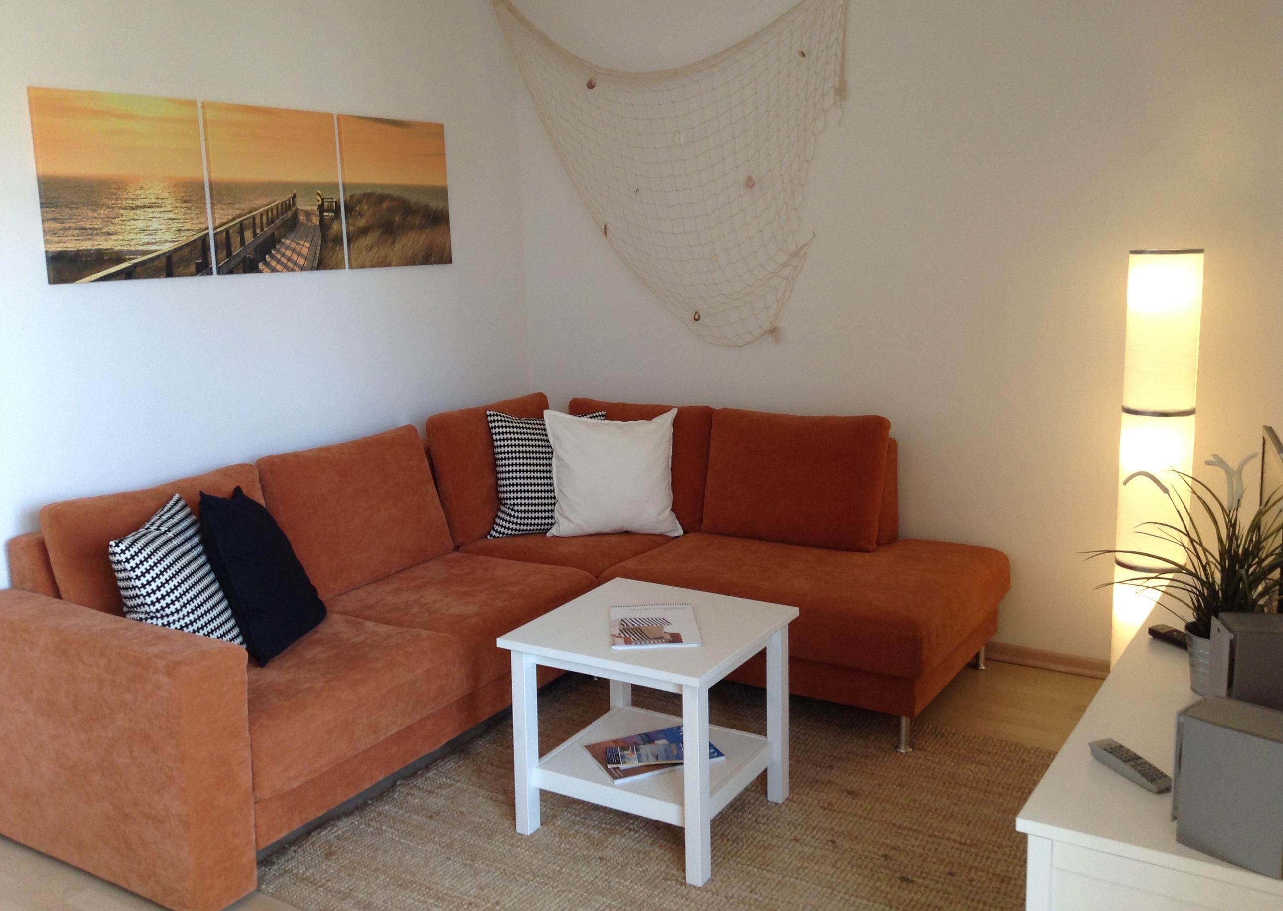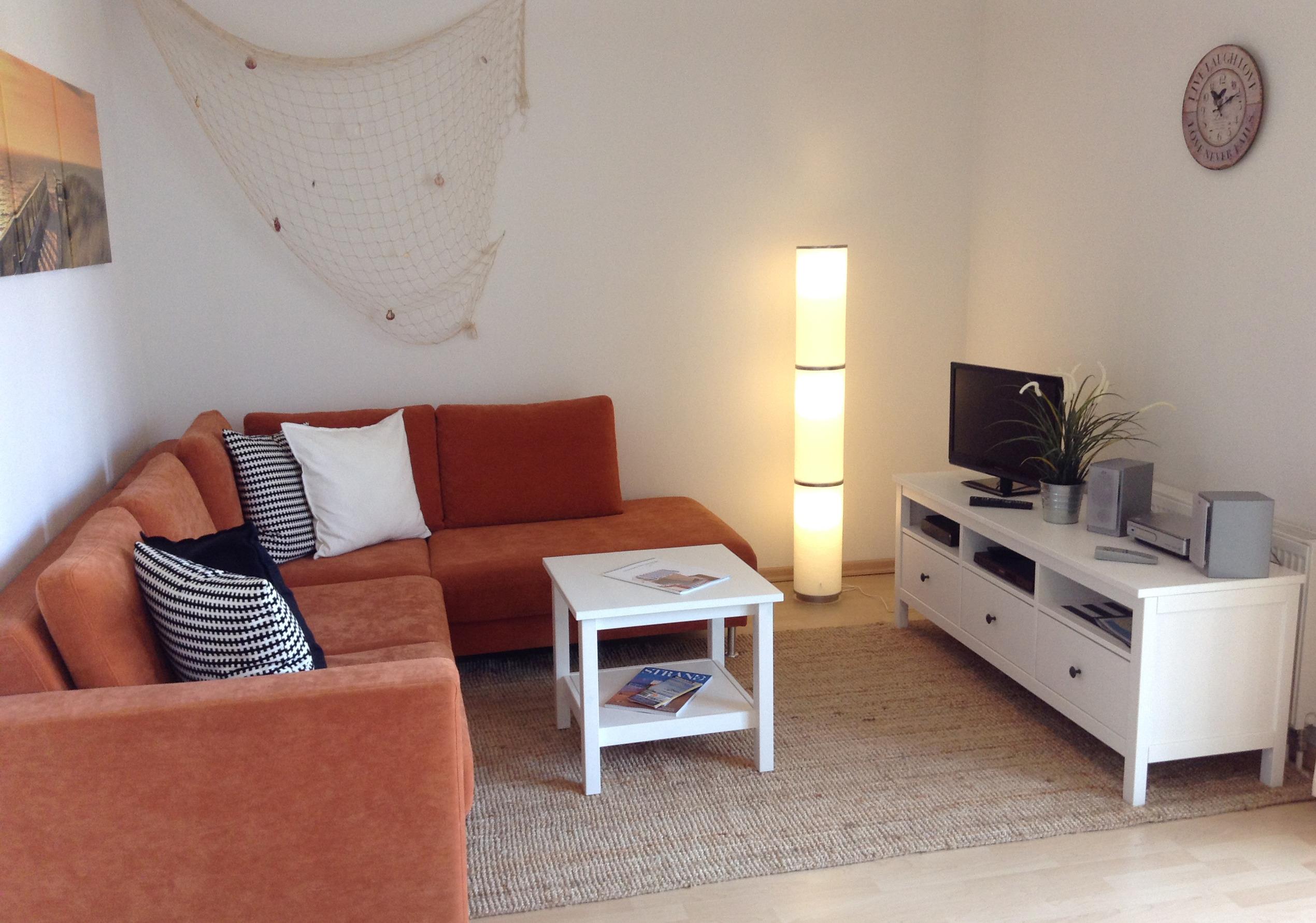 Der Wohnbereich hat eine bequeme Sitzgruppe und einen Flachbild-TV. W-LAN können Sie selbstverständlich kostenlos nutzen.